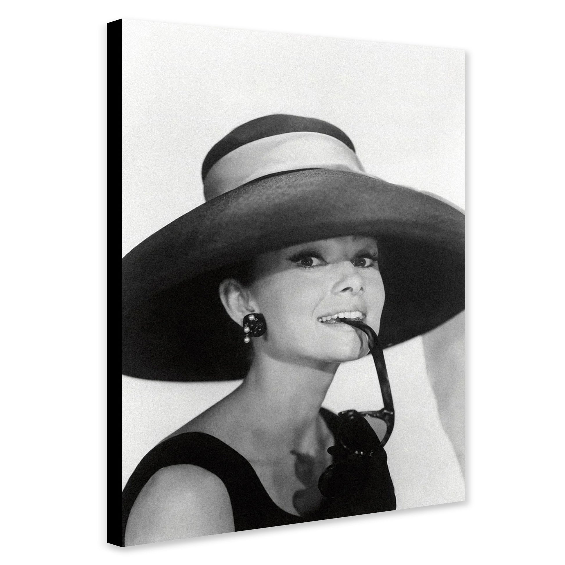 Audrey Hepburn - Breakfast At Tiffany's - Wearing a Hat - Movie Wall Art - Canvas Wall Framed Print - Various Sizes