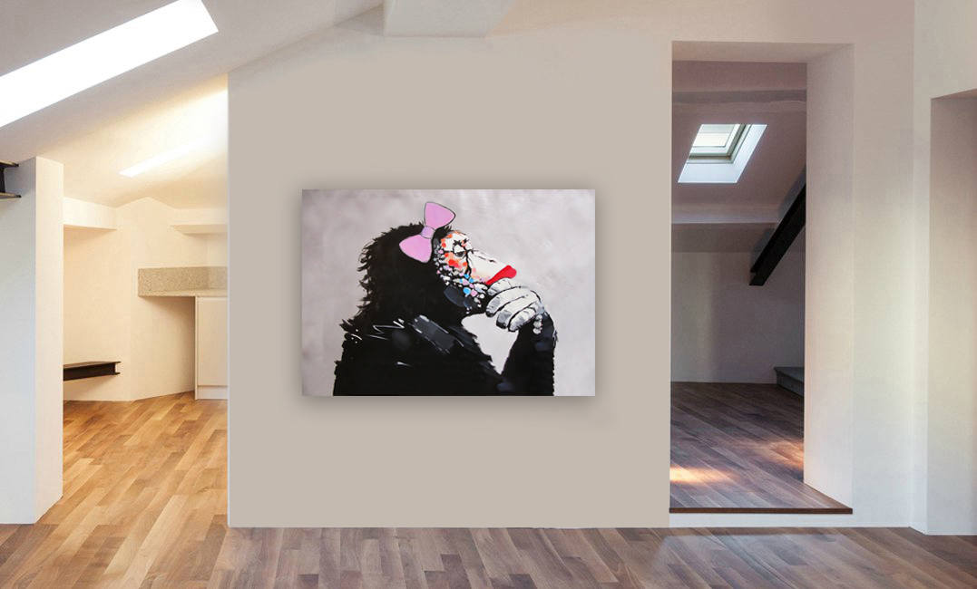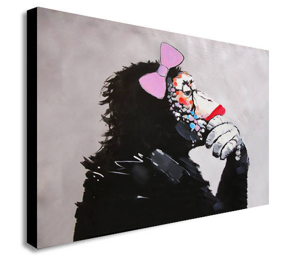 Banksy Female Monkey Gorilla Chimp Thinker Canvas Wall Art Print