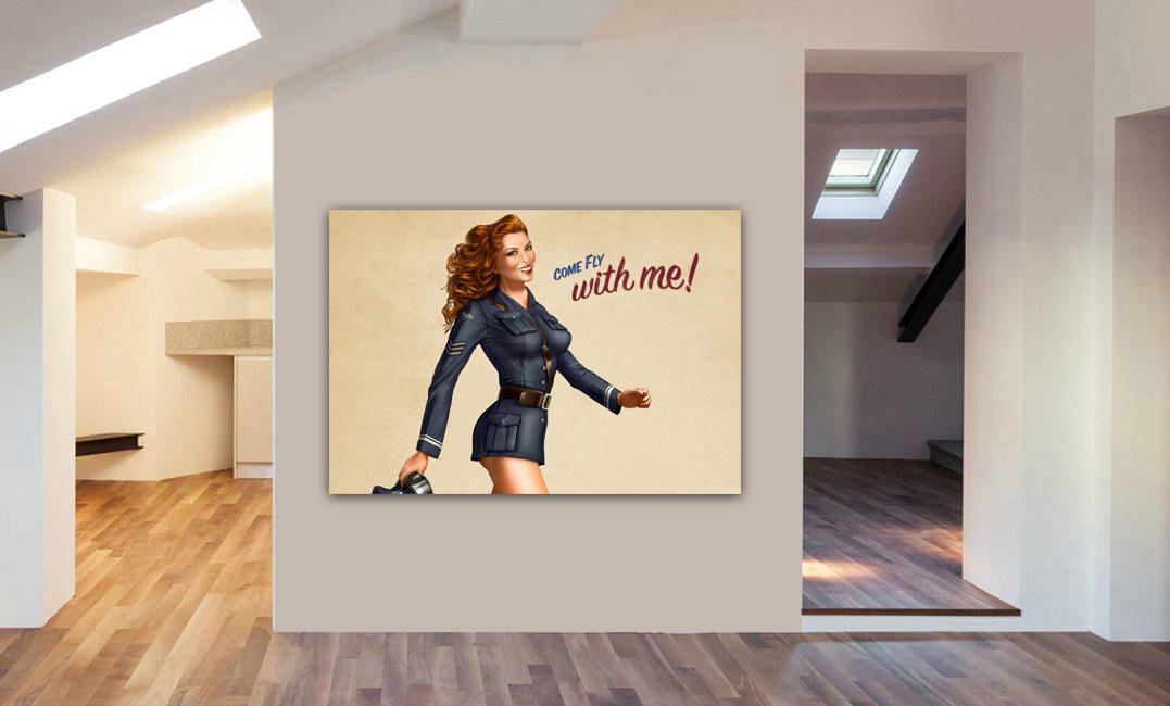 Come Fly With Me Pinup Girl Retro Canvas Wall Art Print - Various Sizes