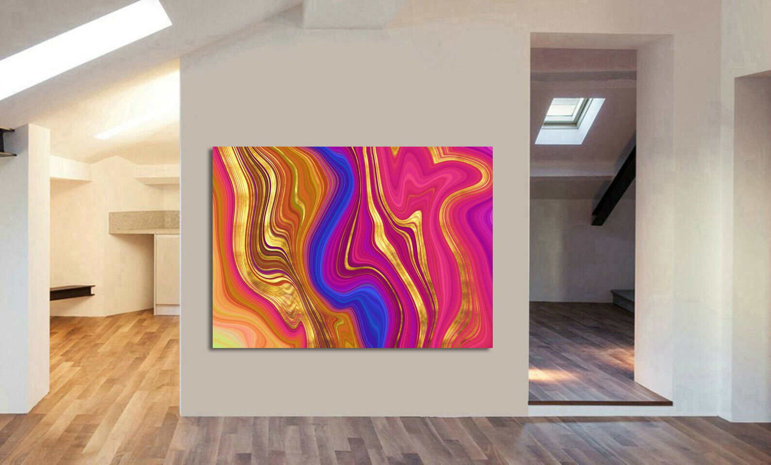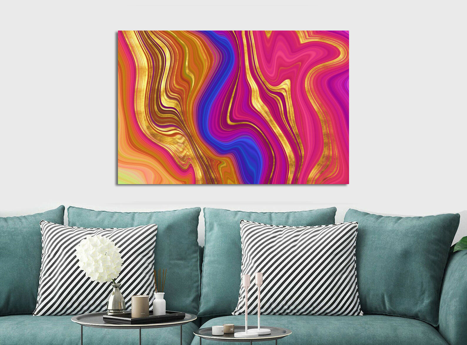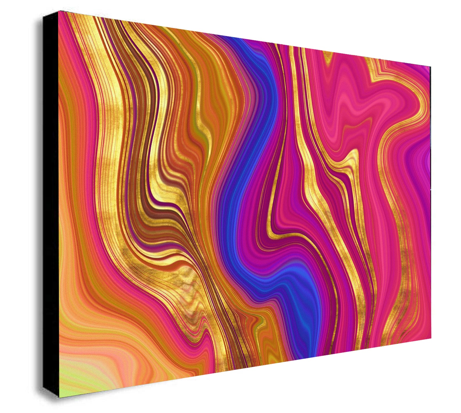 Texture Pink Blue Gold Colour - Canvas Wall Art Framed Print - Various Sizes