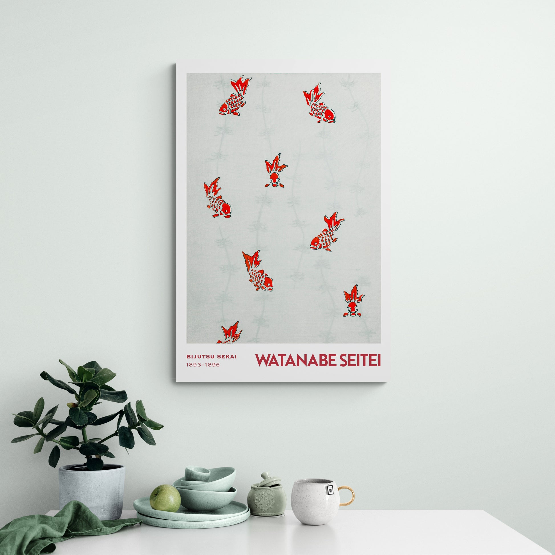 Goldfish Pattern Japanese Art by Watanabe Seitei - Canvas Wall Art Framed Print - Various Sizes