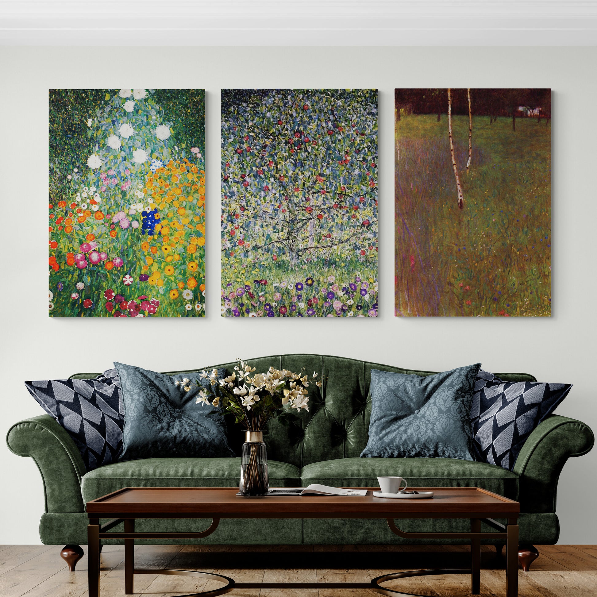 Gustav Klimt Botanical Art - Set Of 3 Detailed Prints - Canvas Wall Art Framed Prints - Various Sizes