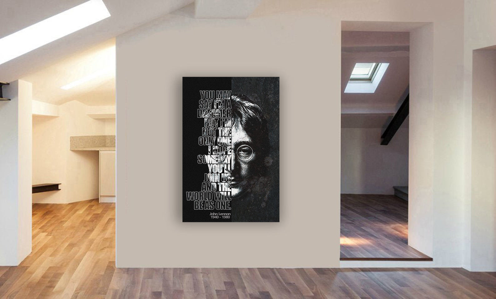 John Lennon - Imagine - The Beatles - Canvas Wall Art Framed Print - Various Sizes