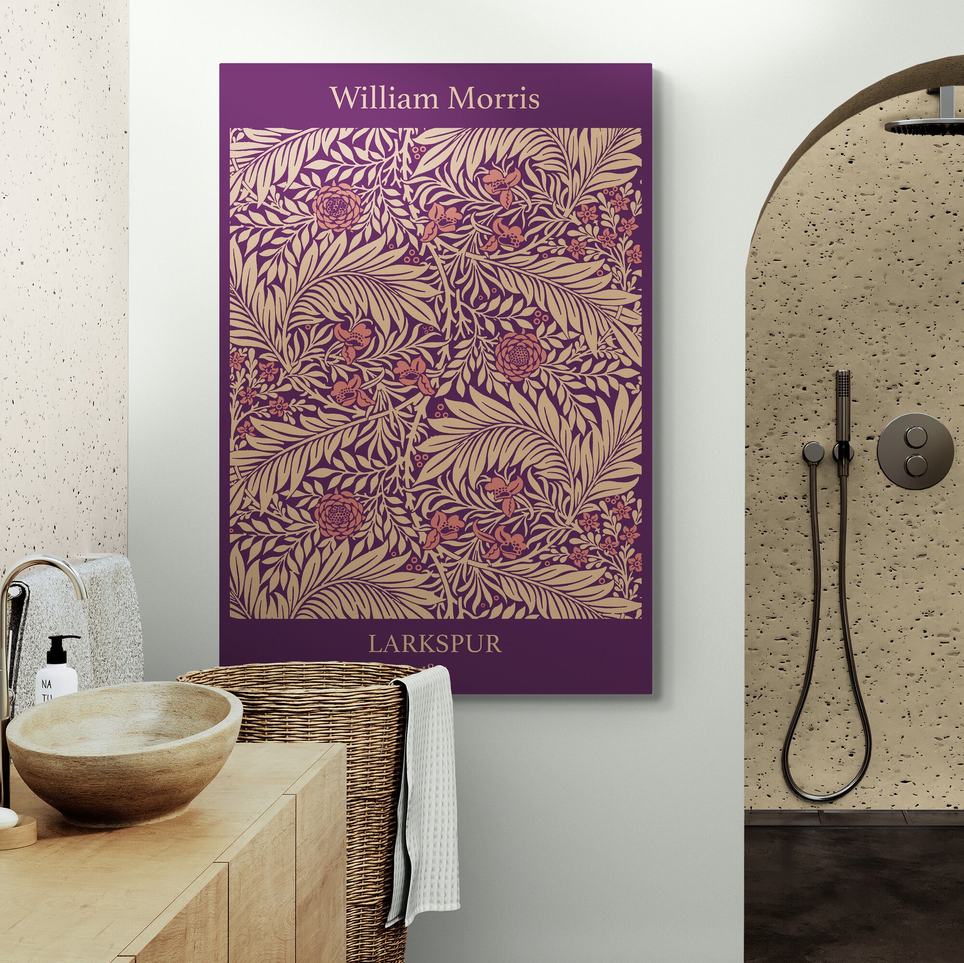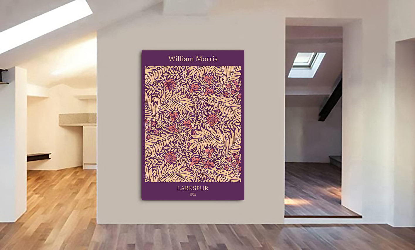 Larkspur Pattern in Purple - Wall art by William Morris - Canvas Wall Art Framed Print - Various Sizes