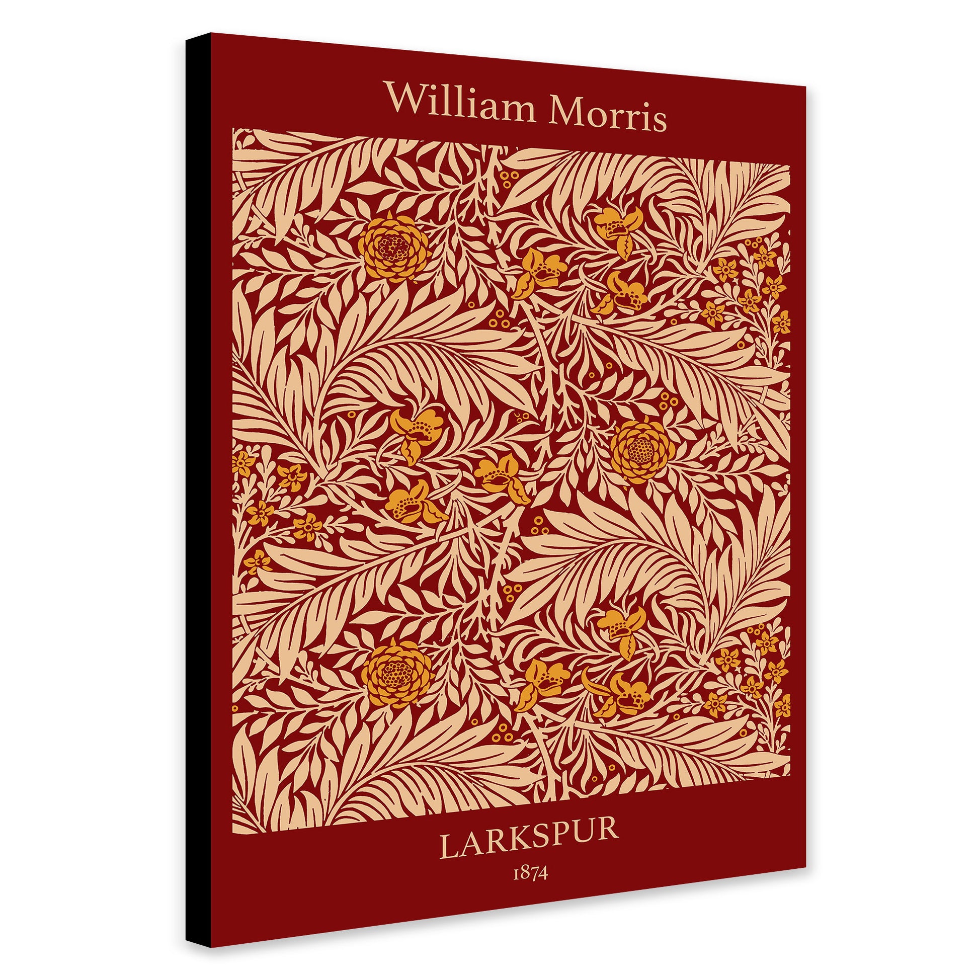 Larkspur Pattern in Red - Wall art by William Morris - Canvas Wall Art Framed Print - Various Sizes