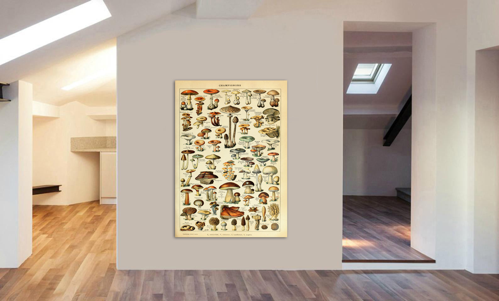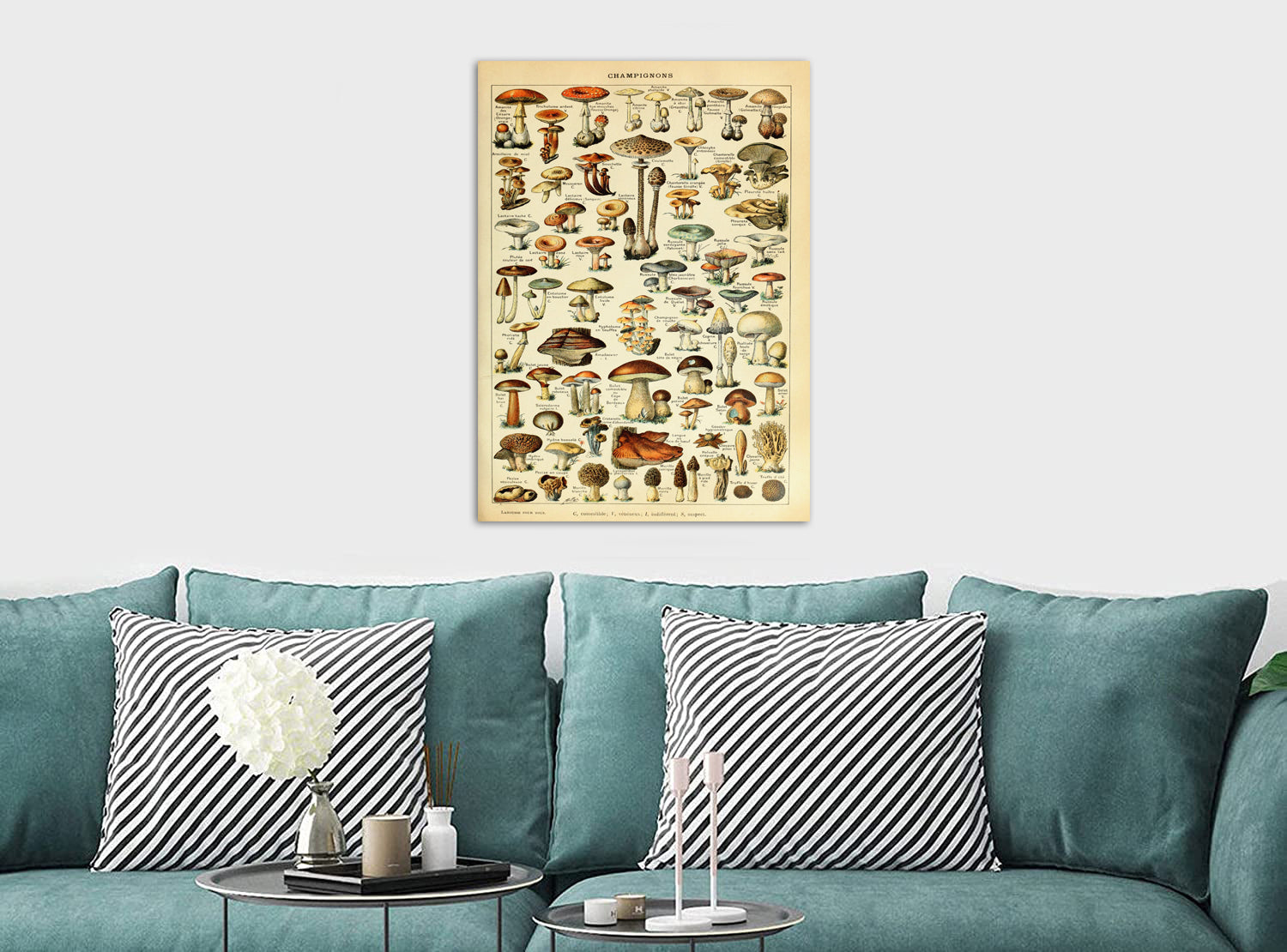 Mushroom Illustration Vintage - Canvas Wall Art Framed Print. Various Sizes