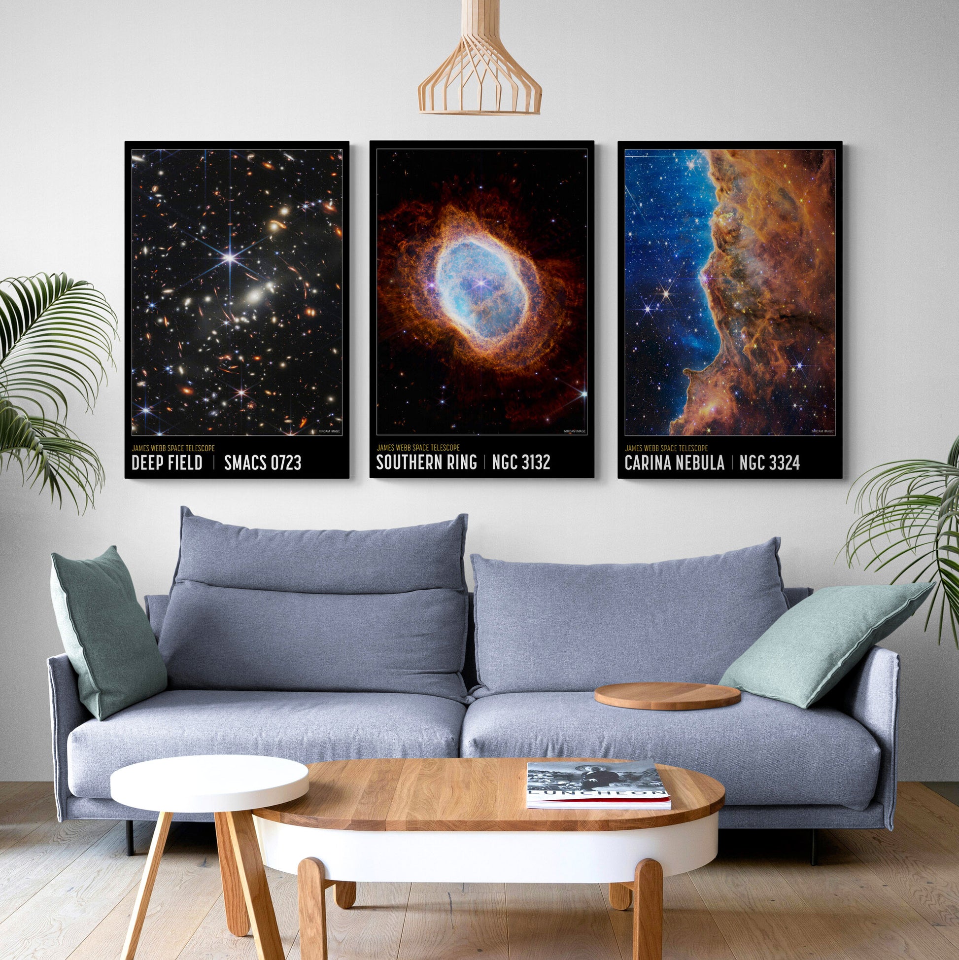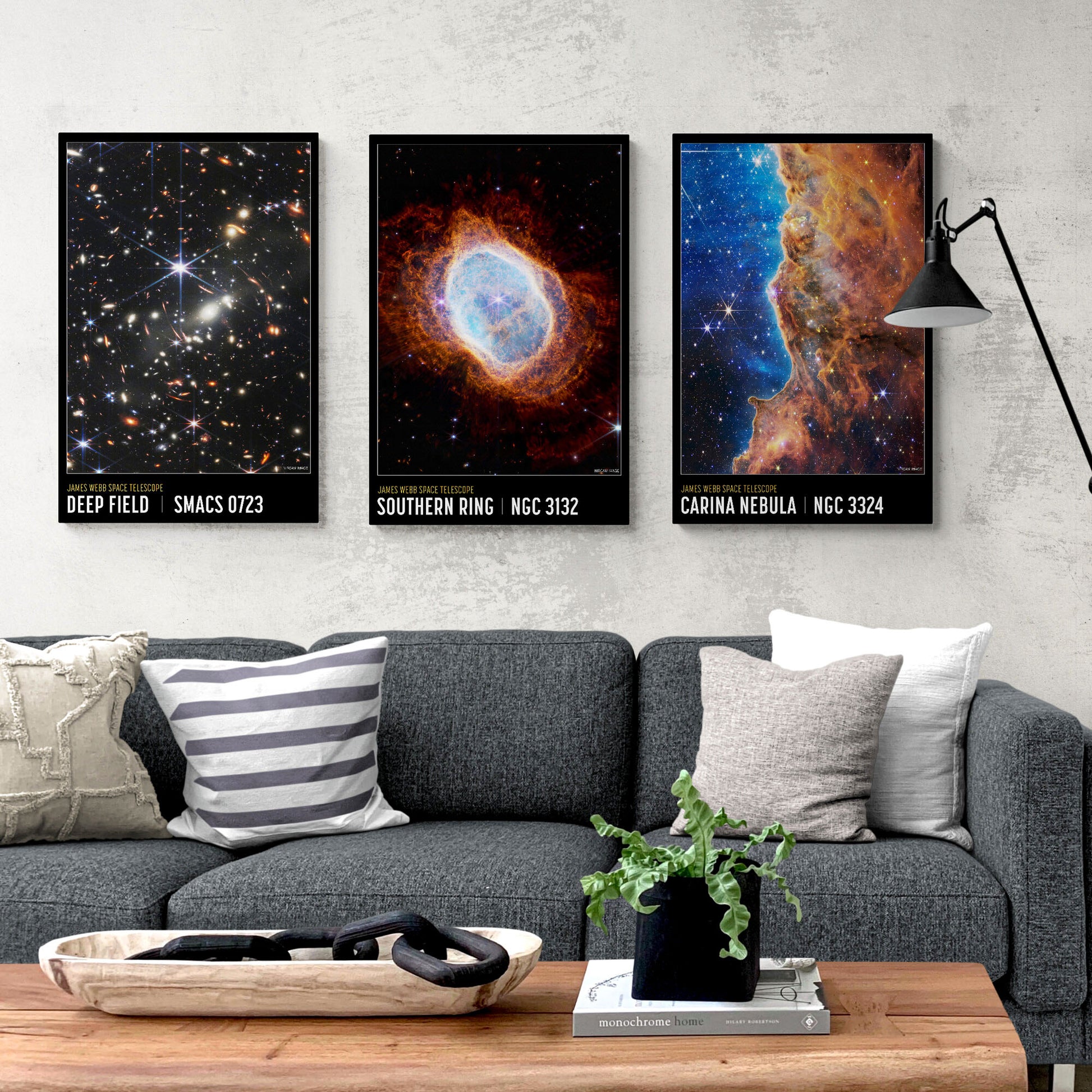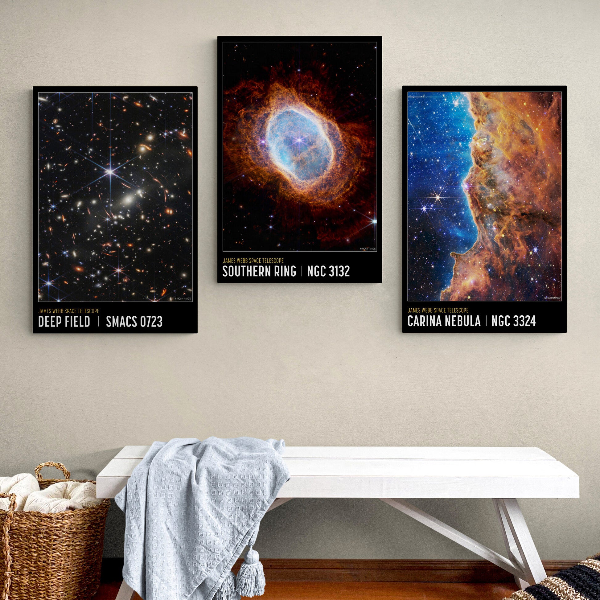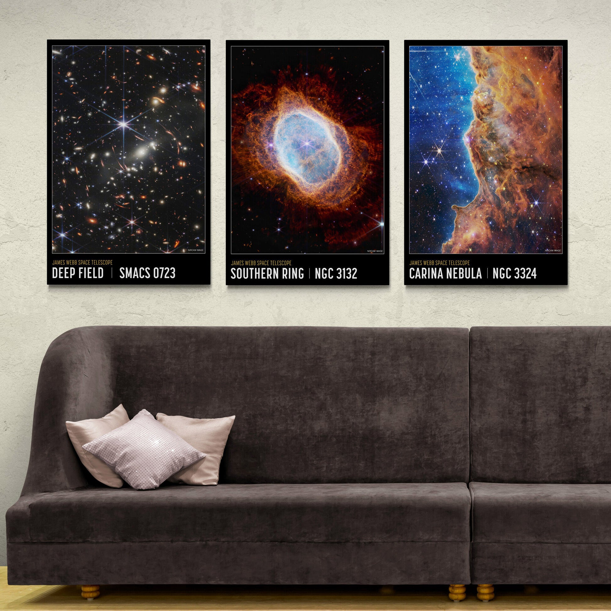 NASA Deep Field Set Of 3 - James Webb Space Telescope First Images, Carina Nebula - Canvas Wall Art Framed Prints - Various Sizes