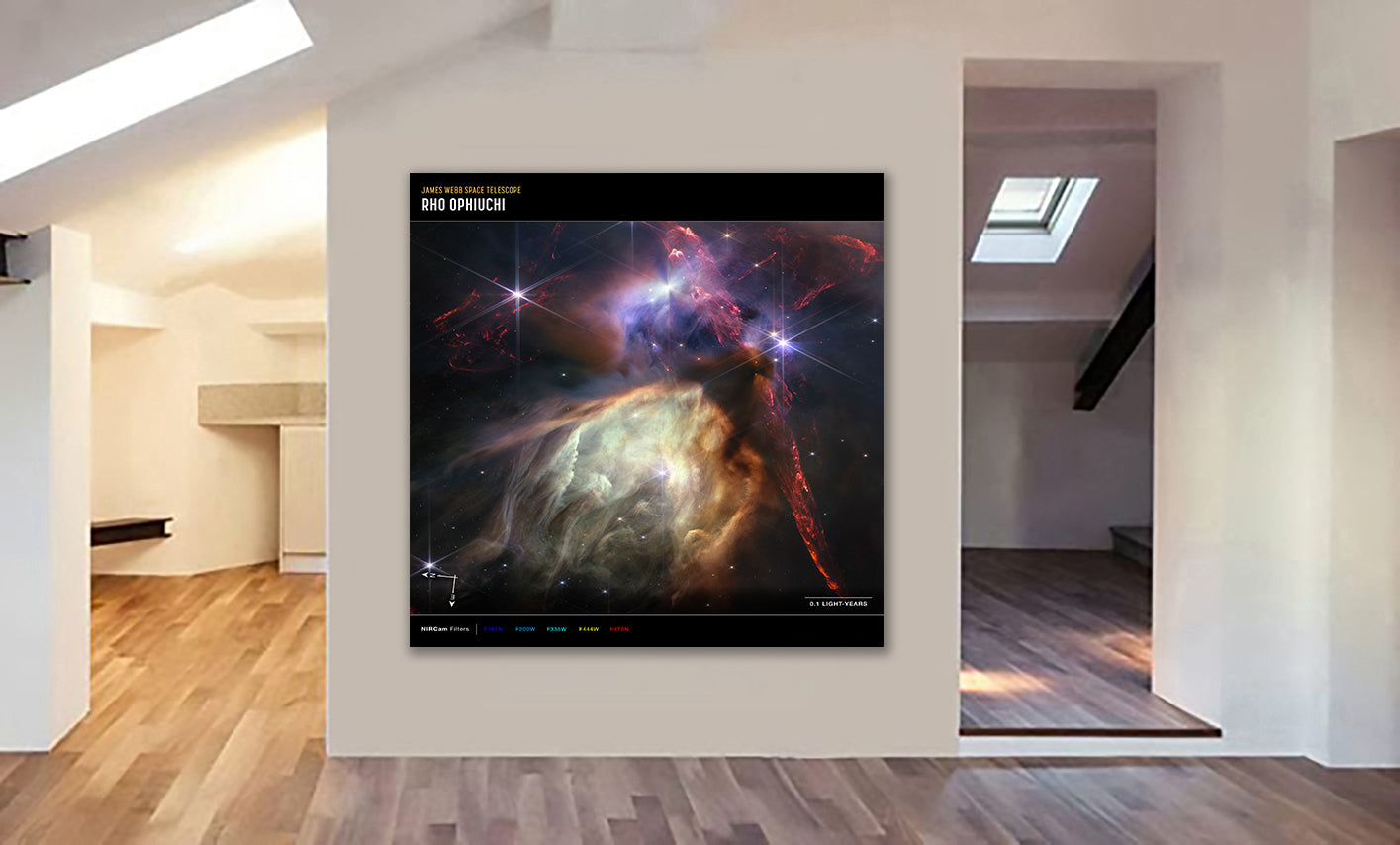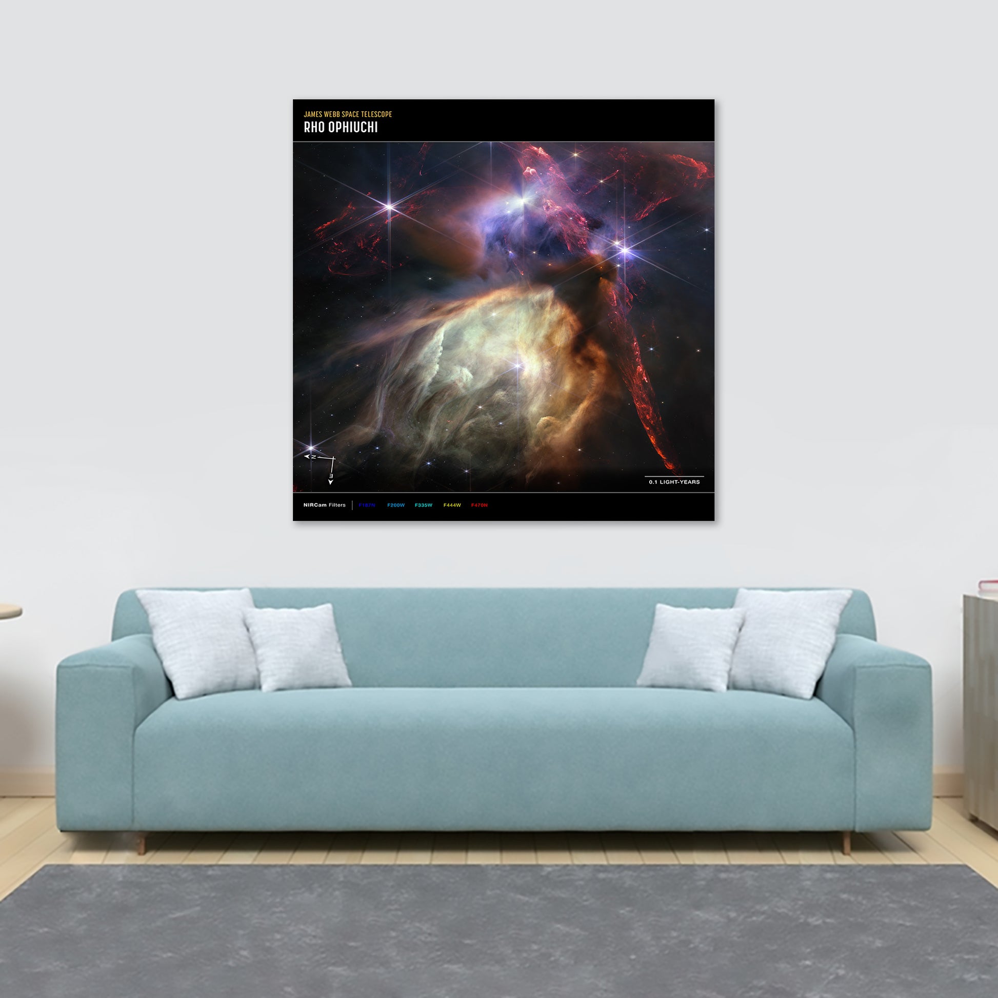 NASA - James Webb Telescope - Rho Ophiuchi (NIRCam Compass Image) Wall Art - Framed Canvas Wall Art Print - Various Sizes