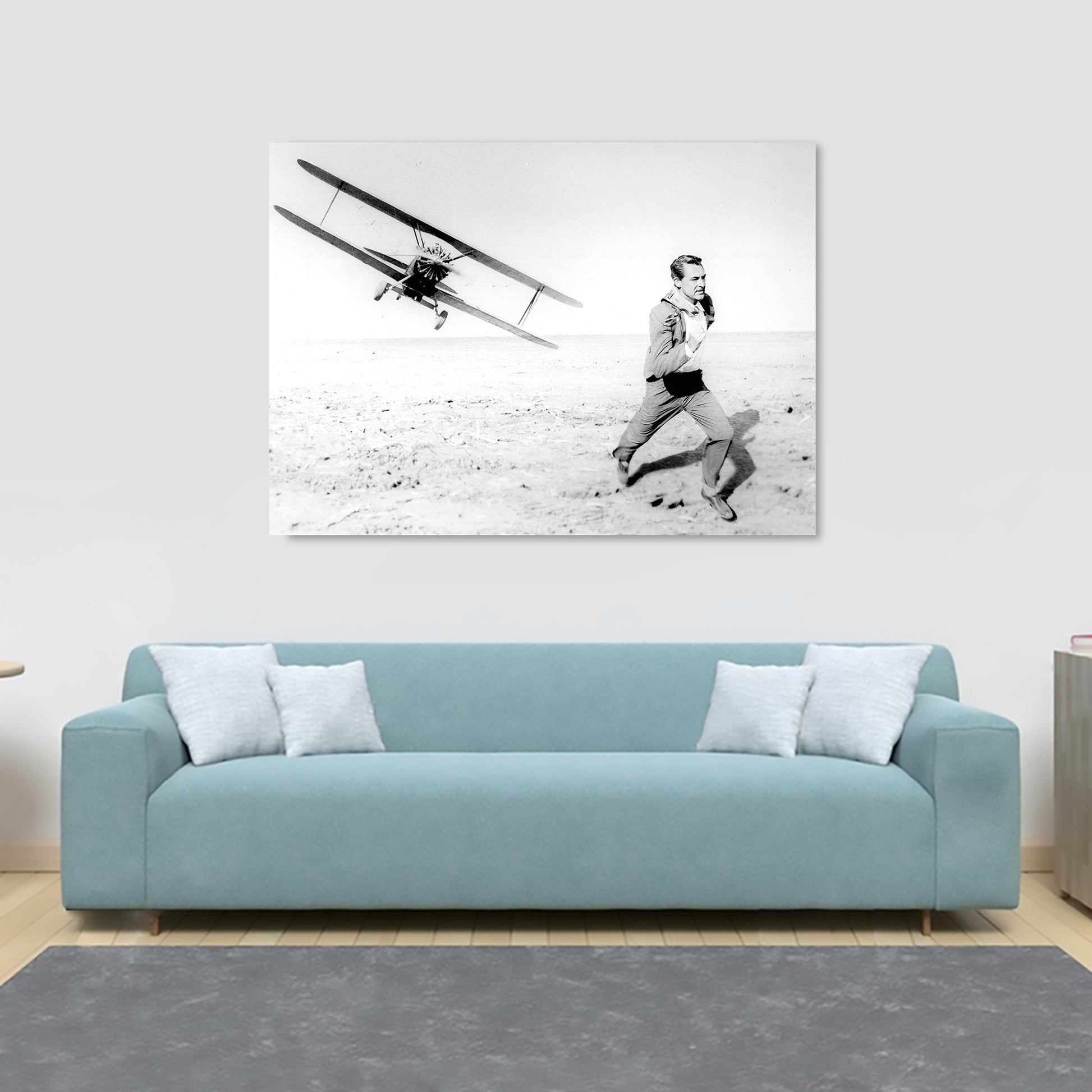 North by Northwest - Cary Grant Airplane Chase - Movie Wall Art - Canvas Wall Art Framed Print - Various Sizes