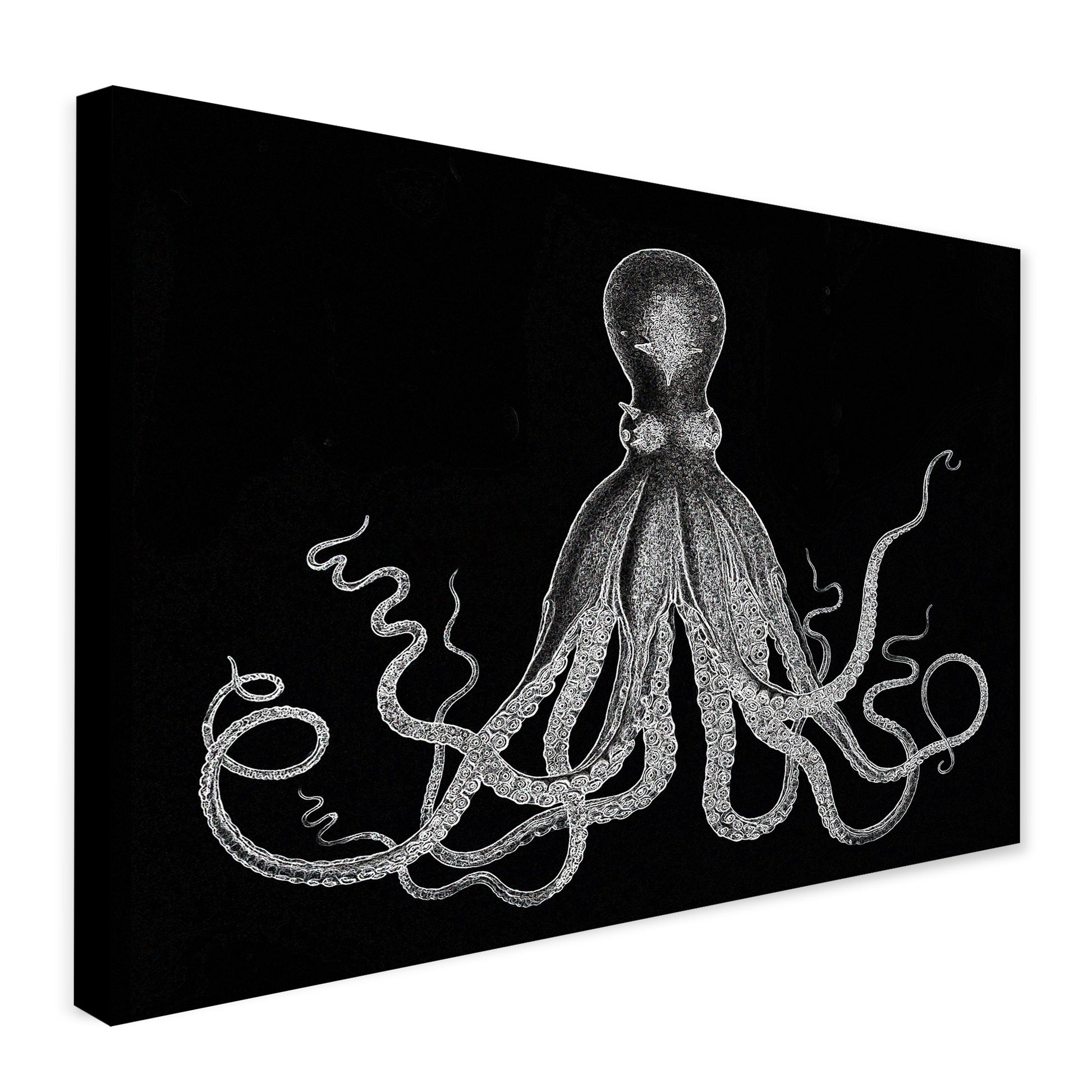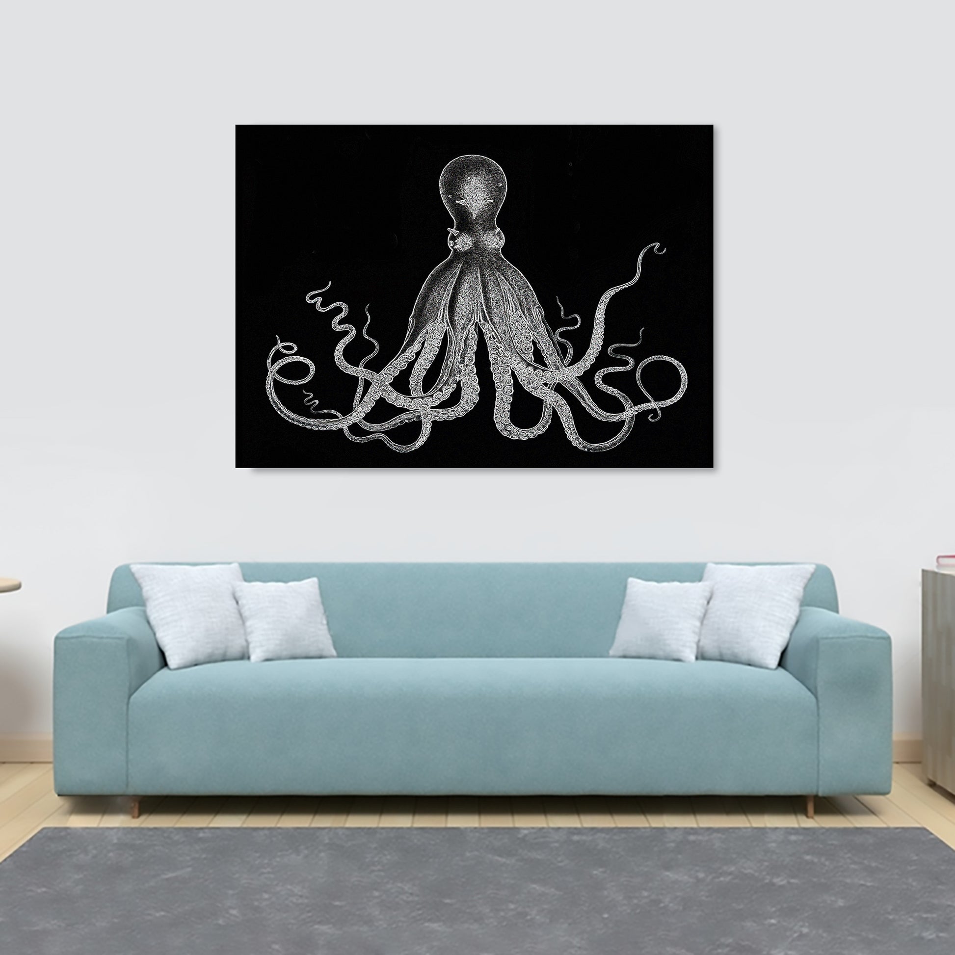 Octopus Vintage Art - Black And White - Canvas Wall Art Framed Print - Various Sizes