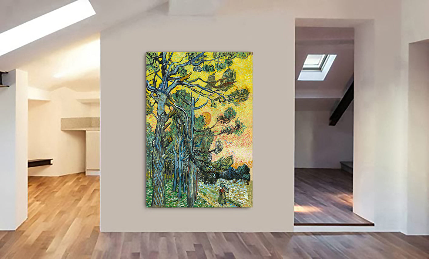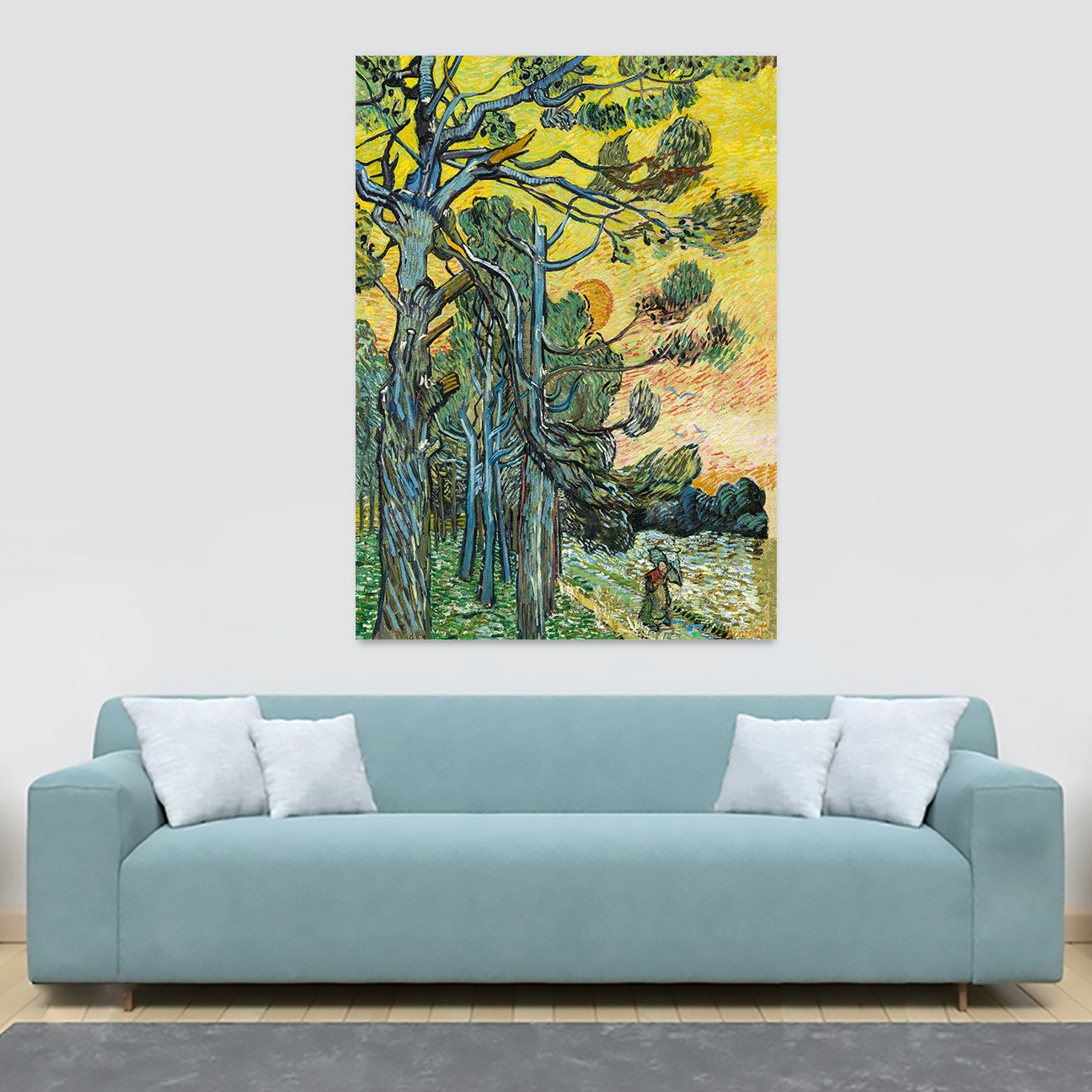 Pine Trees Against An Evening Sky by Vincent Van Gogh - Canvas Wall Art Framed Print - Various Sizes