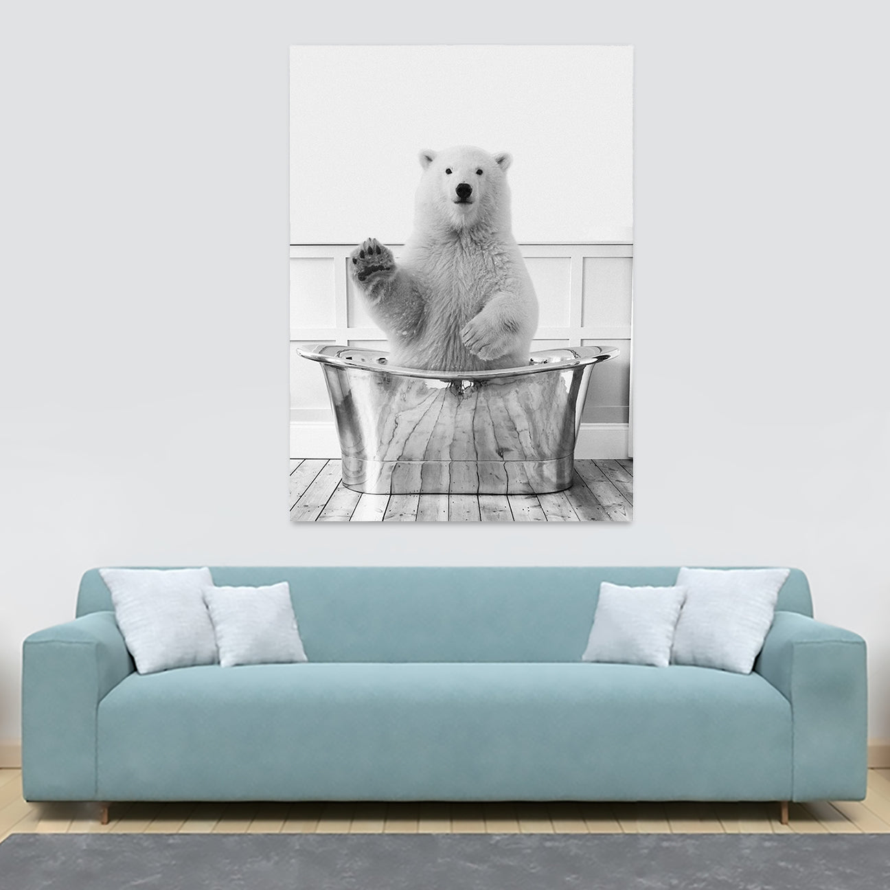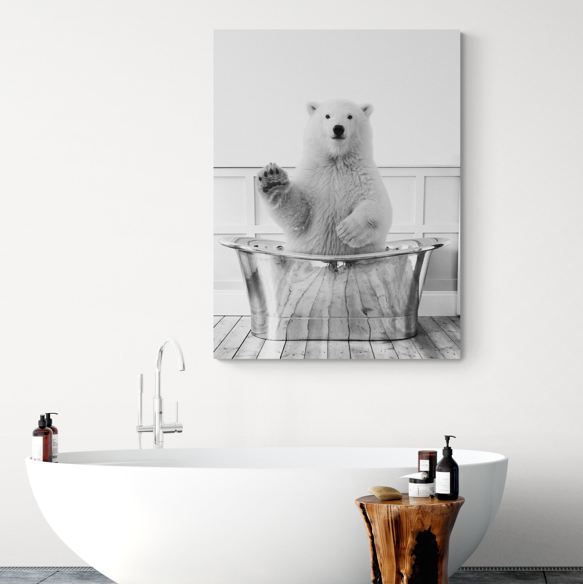 Polar Bear In Bath - Funny Bathroom Wall Art - Canvas Wall Art Framed Print - Various Sizes