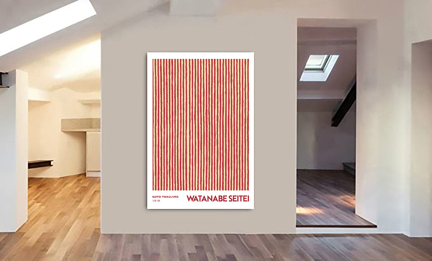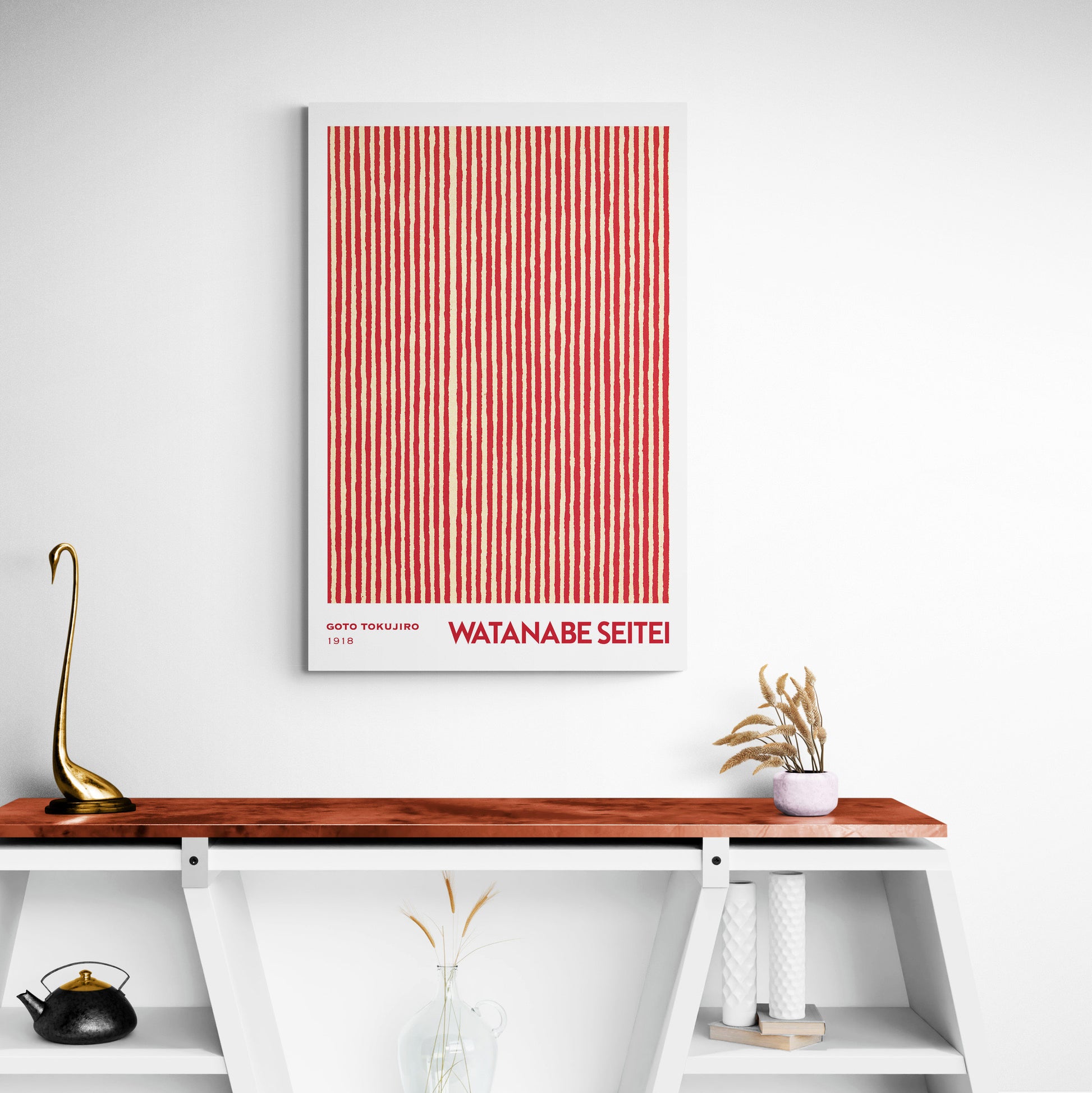 Red Stripes Japanese Abstract Art by Watanabe Seitei - Canvas Wall Art Framed Print - Various Sizes