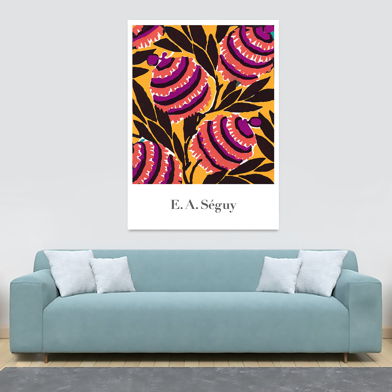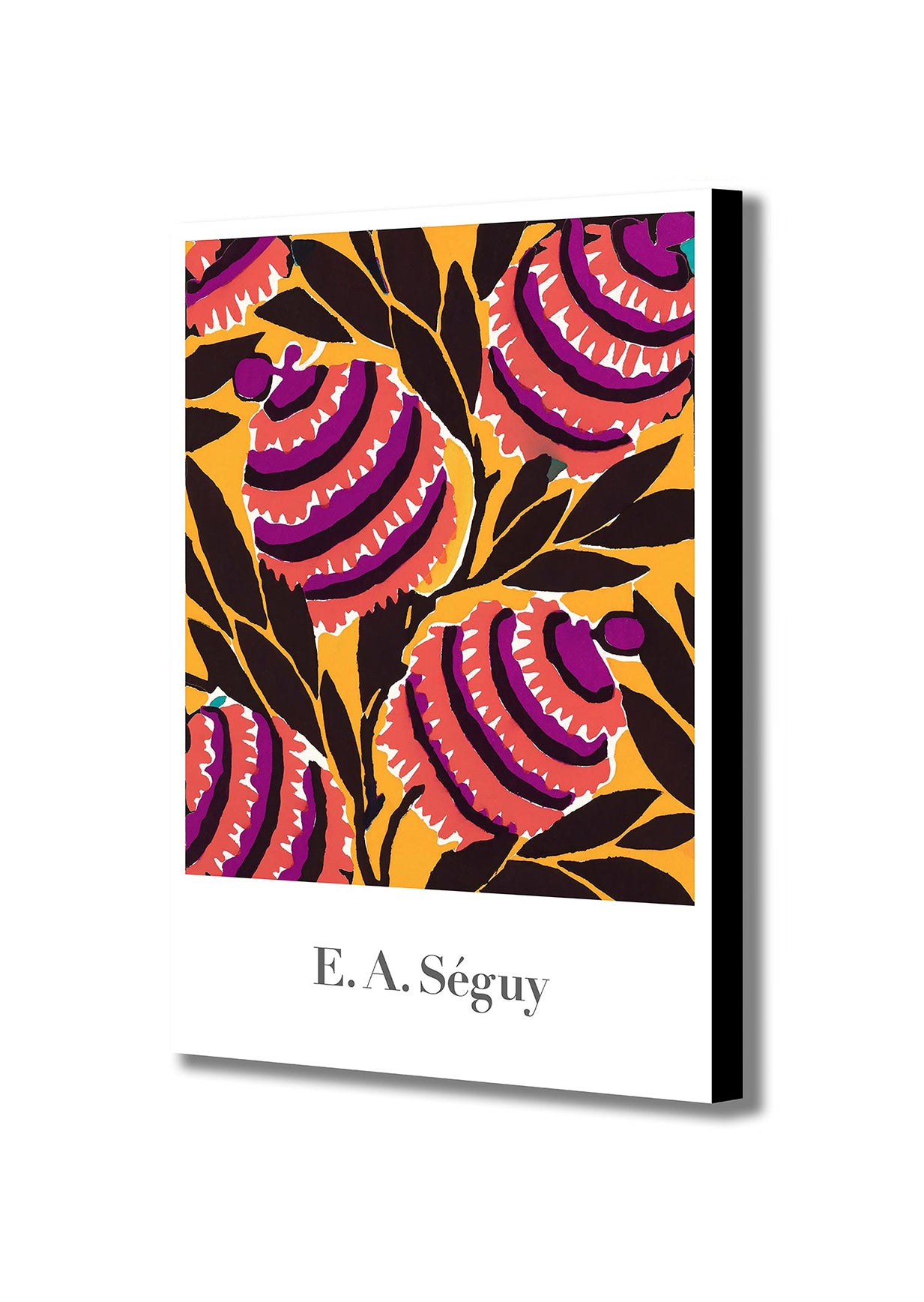 Red Yellow Flower Pattern - Vintage - by E. A. Seguy - Canvas Wall Art Framed Print - Various Sizes