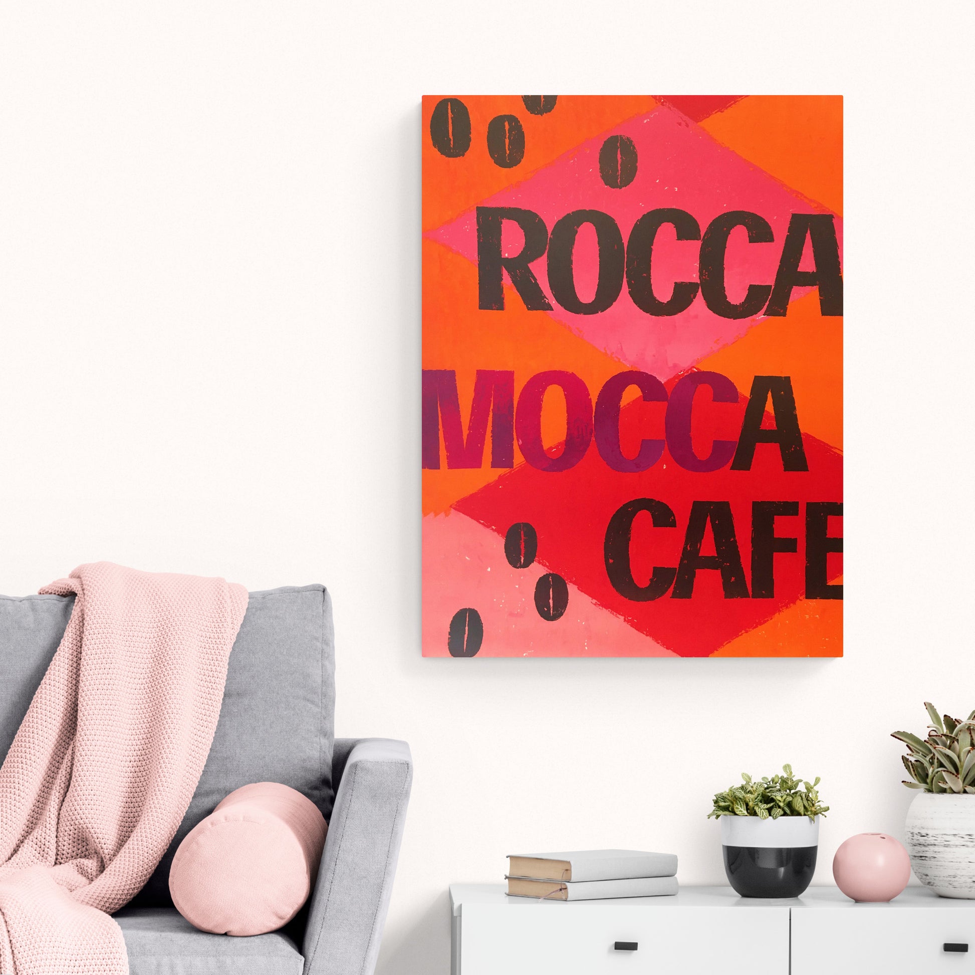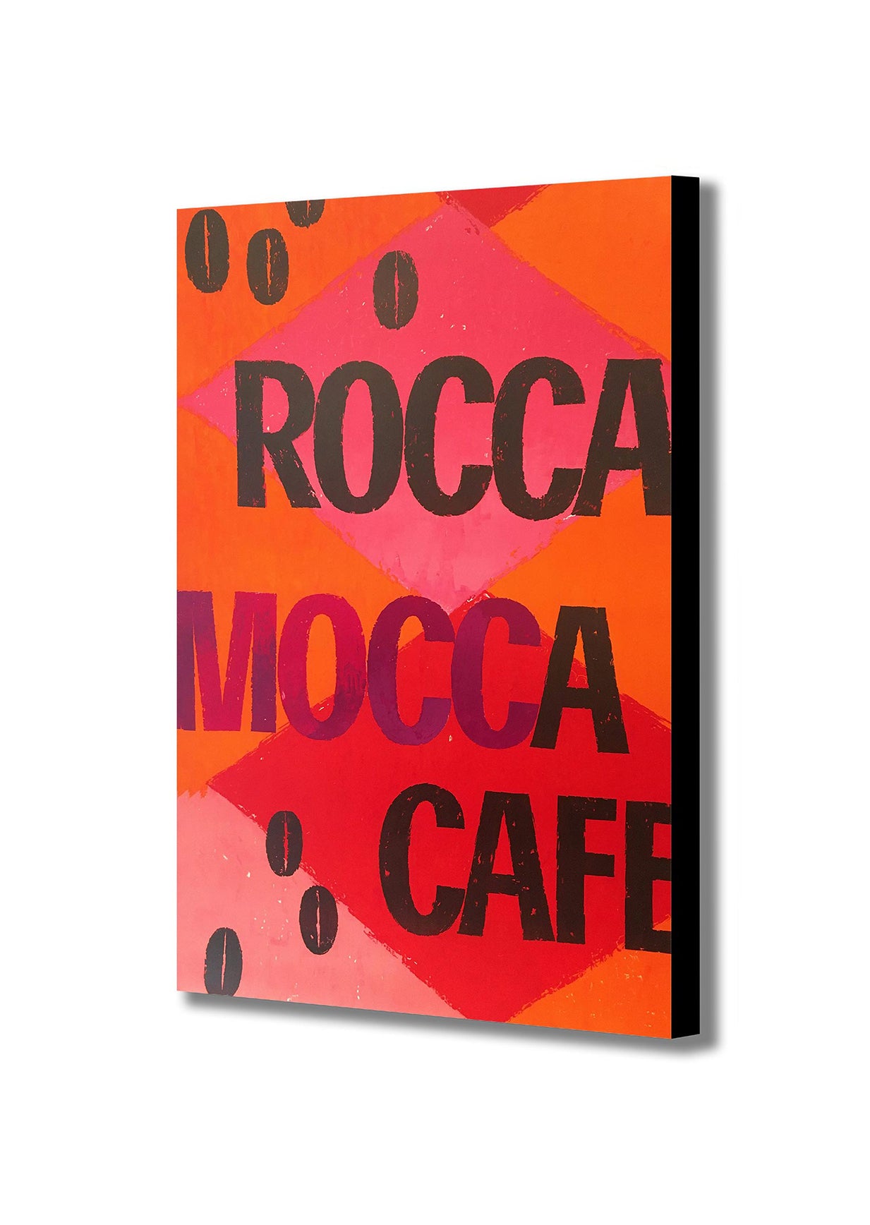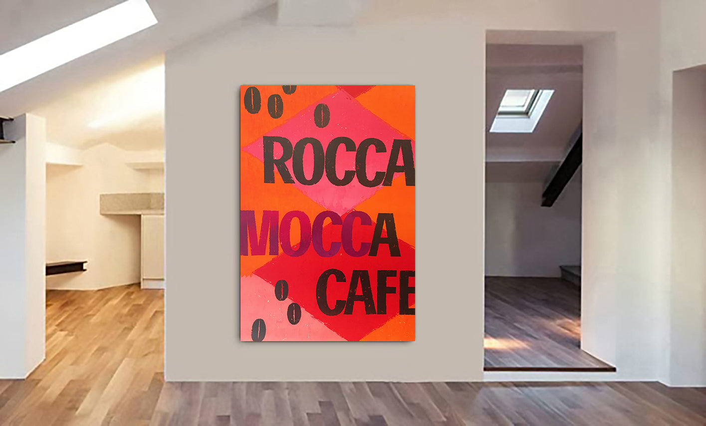 Rocca Mocca Cafe Typography Art - Canvas Wall Art Framed Print - Various Sizes