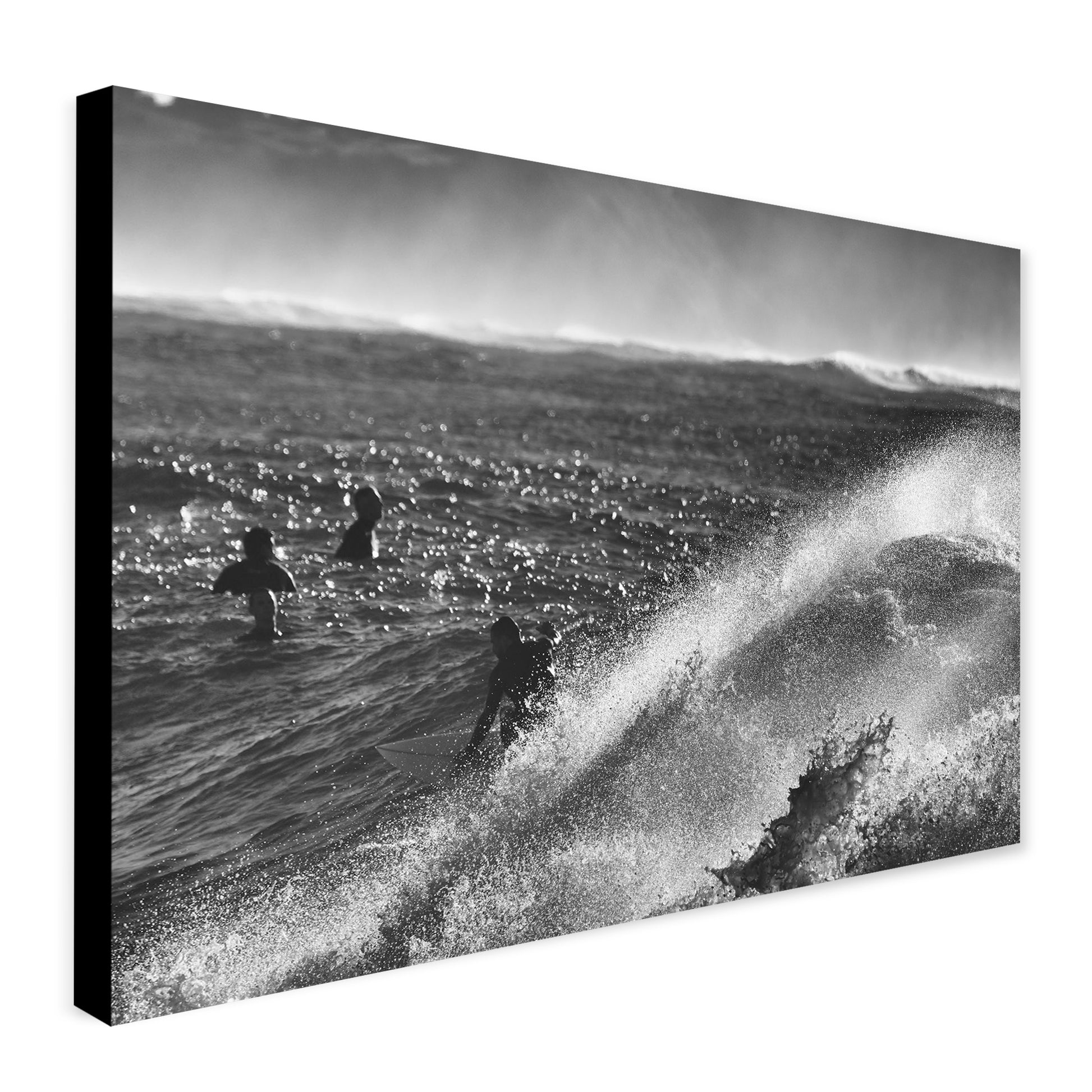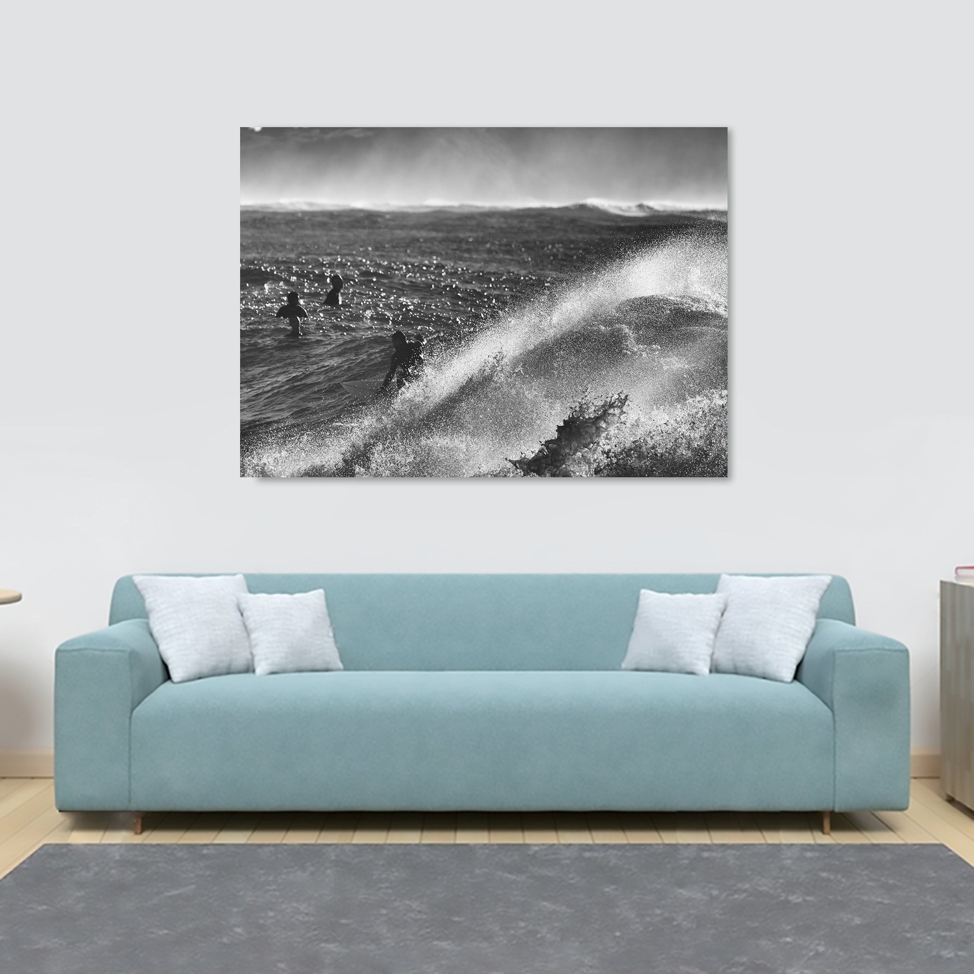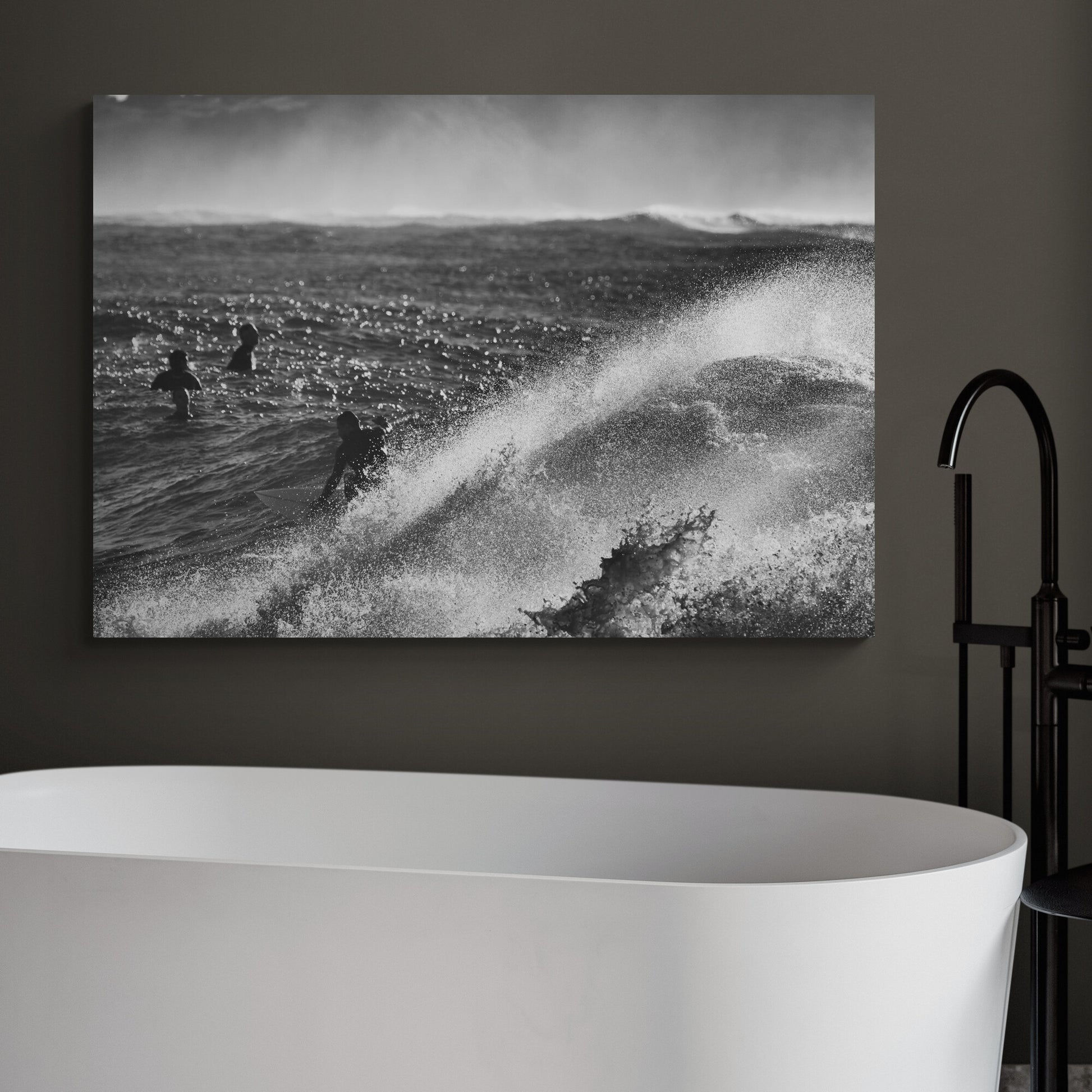 Surfers - Monochrome Waves - Wall Art - Canvas Wall Art Framed Print - Various Sizes