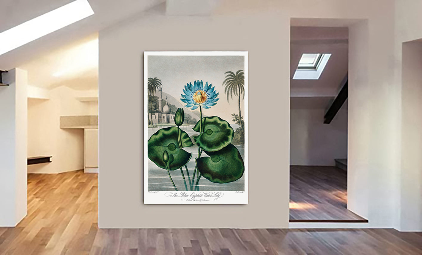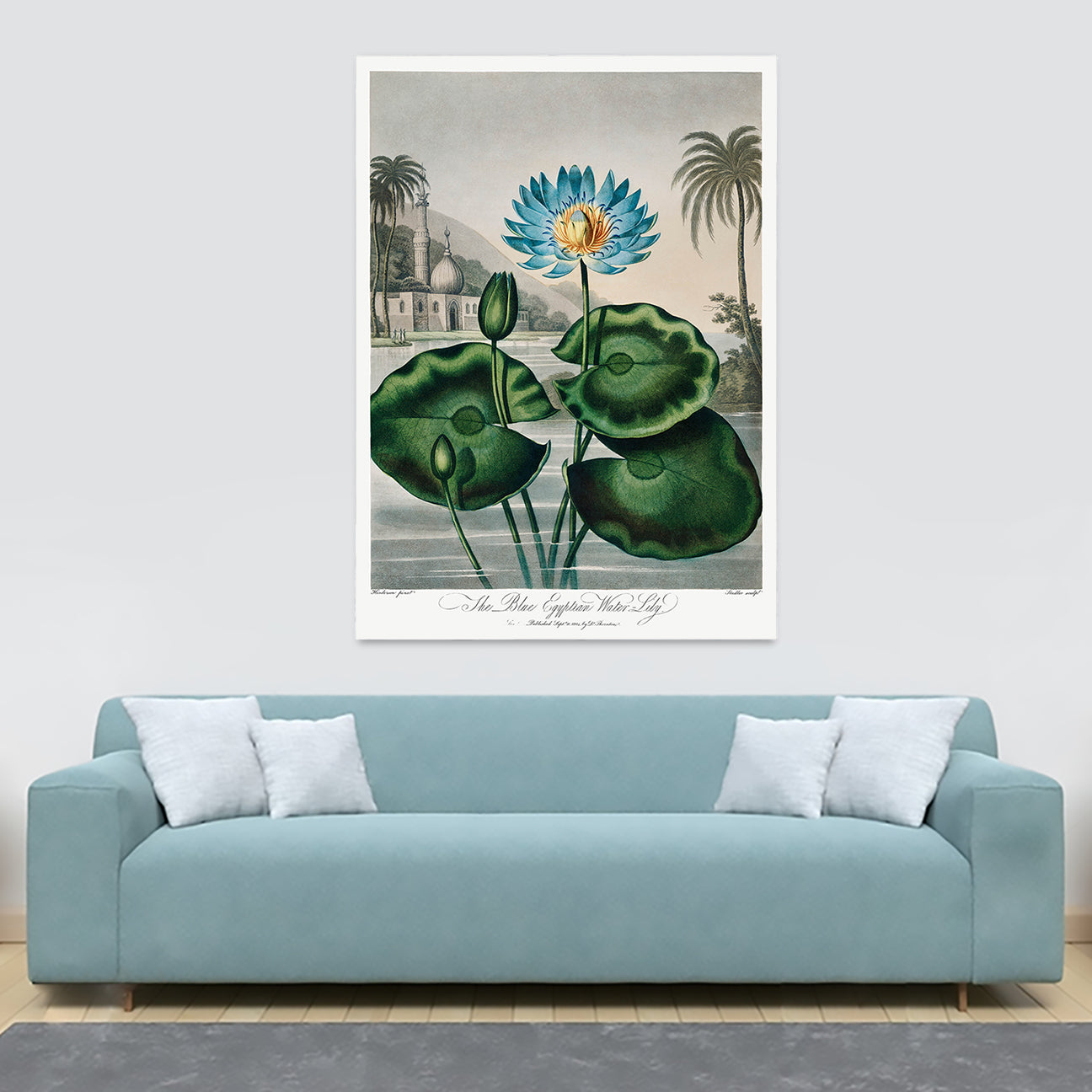 The Blue Egyptian Water-Lily from The Temple of Flora by Robert John Thornton 1807 - Canvas Wall Art Framed Print - Various Sizes