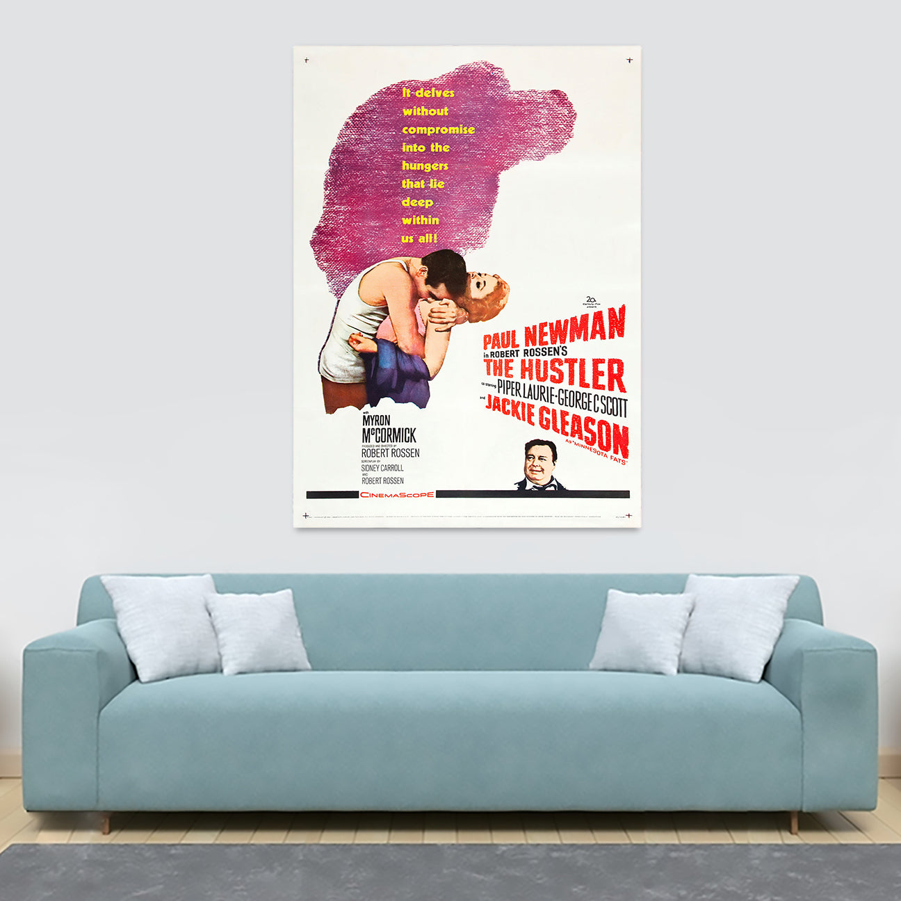 The Hustler 1961 Paul Newman Film Cover Art - Canvas Wall Art Framed Print - Various Sizes