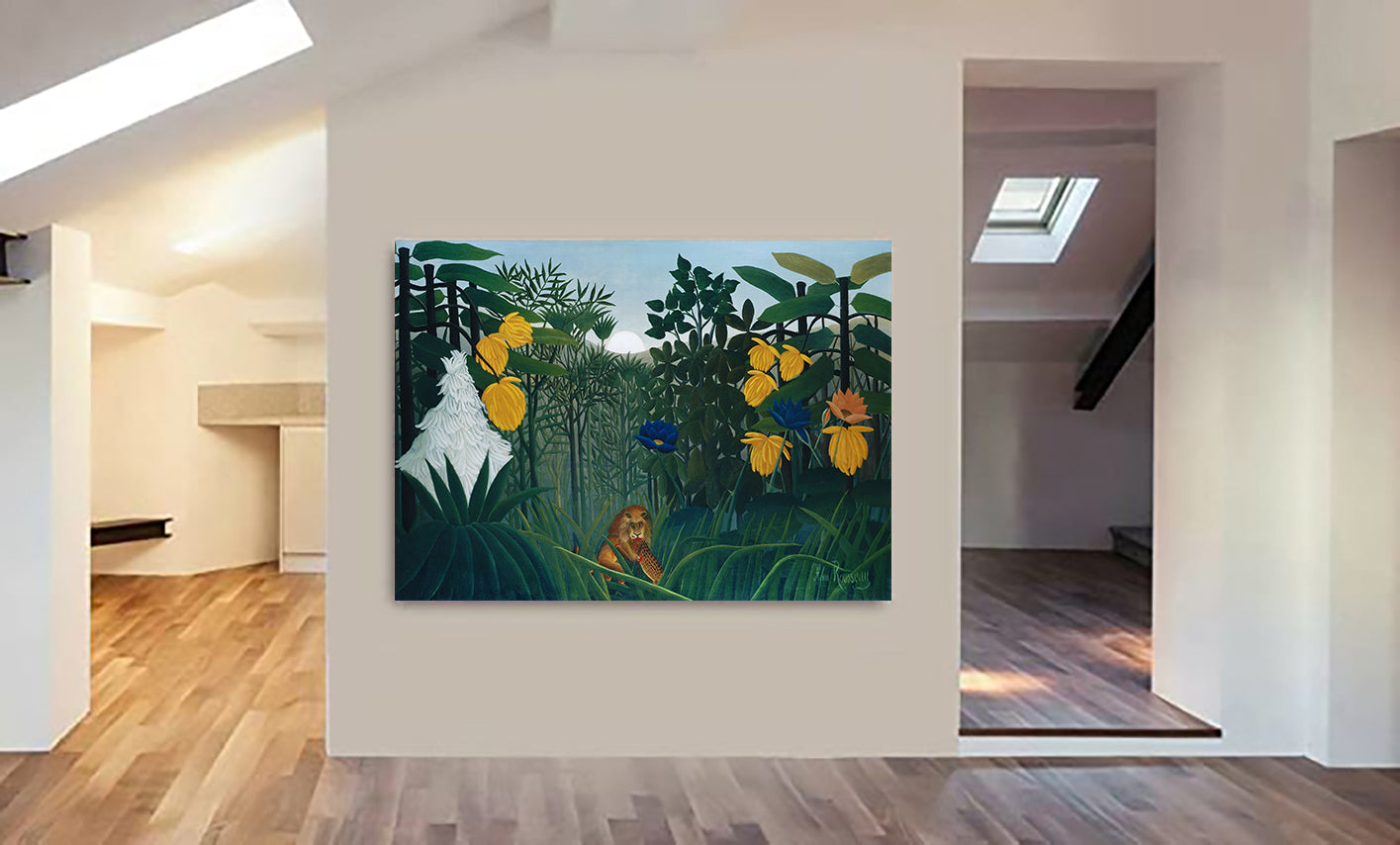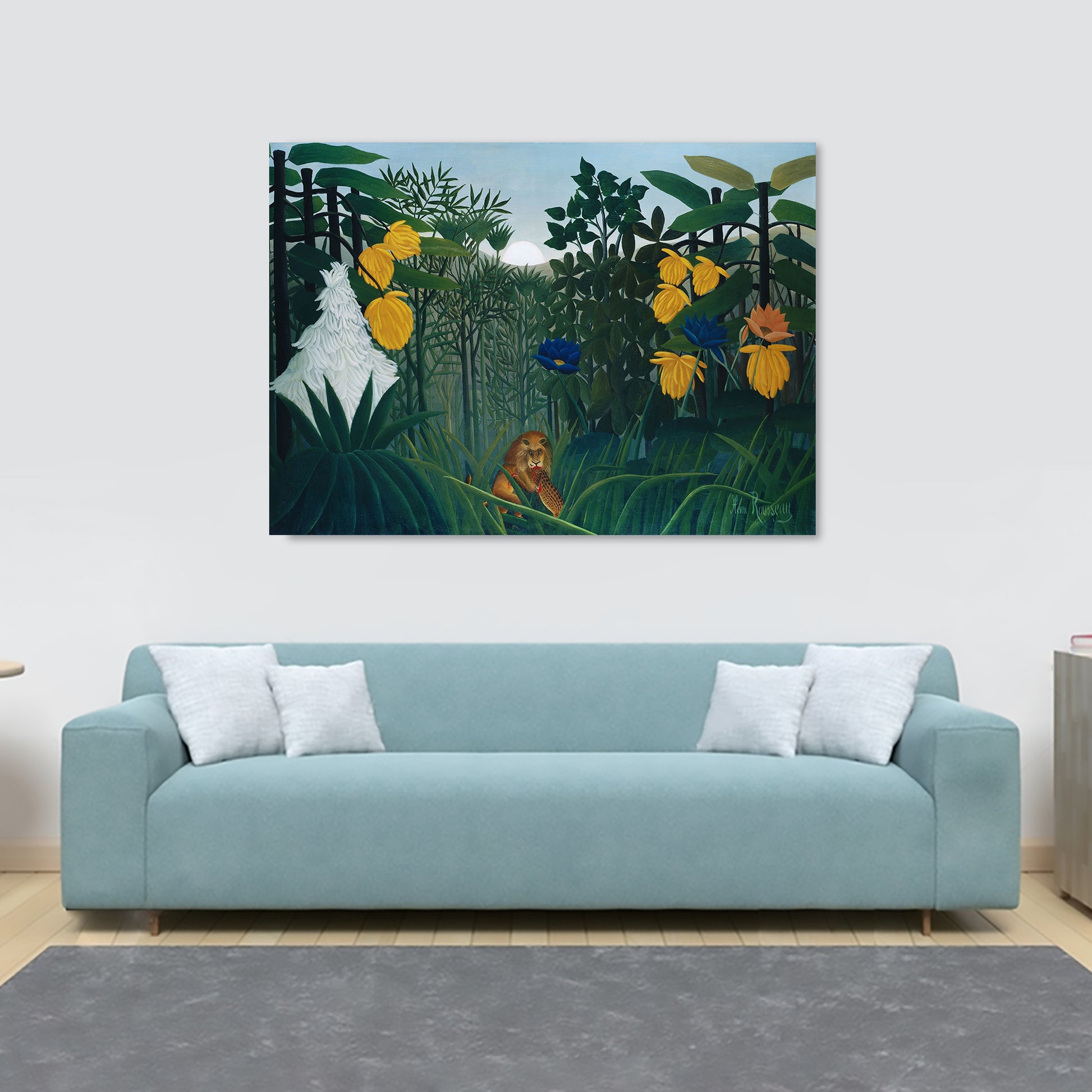 The Repast of the Lion (1907) by Henri Rousseau - Canvas Wall Art Framed Print - Various Sizes