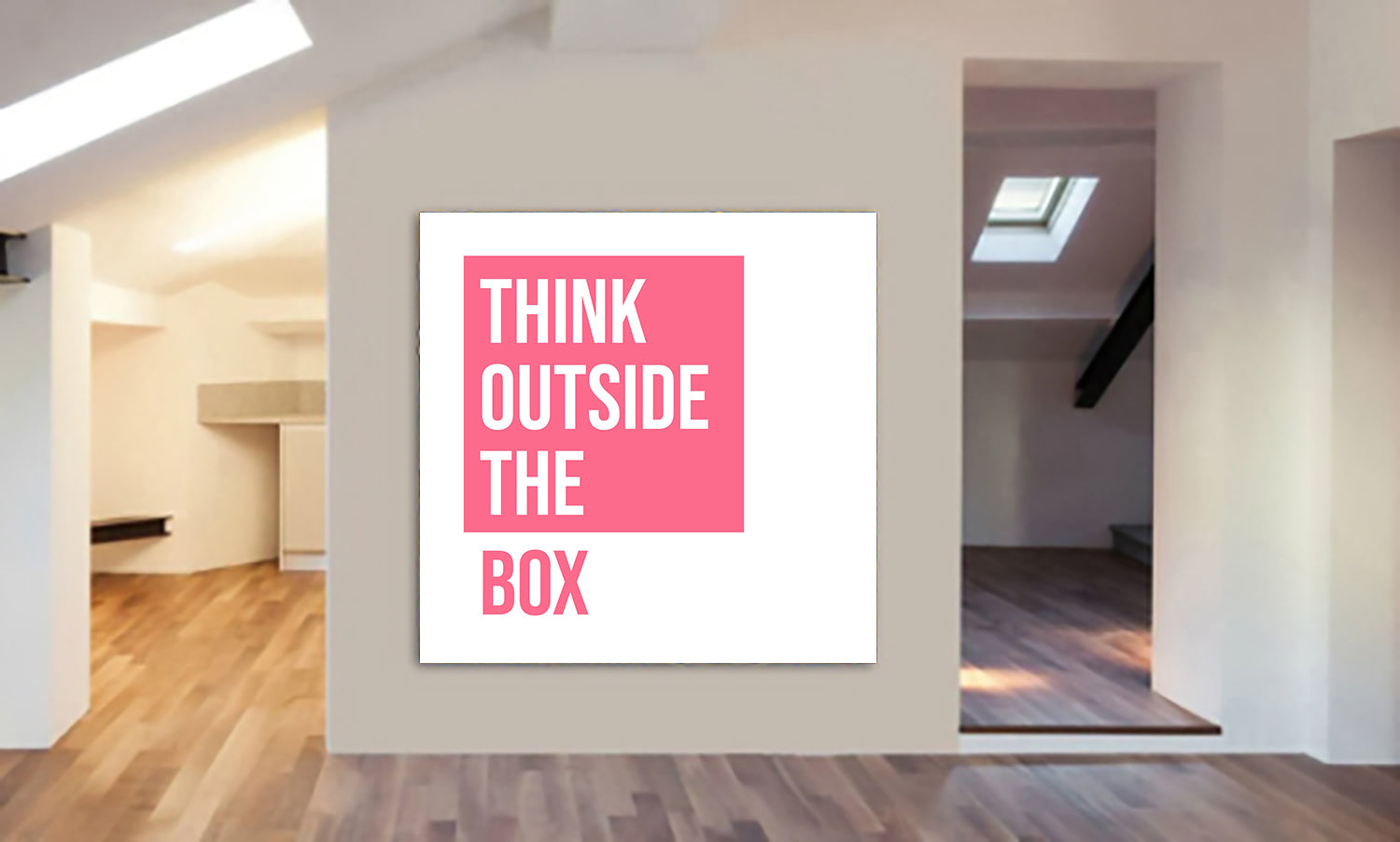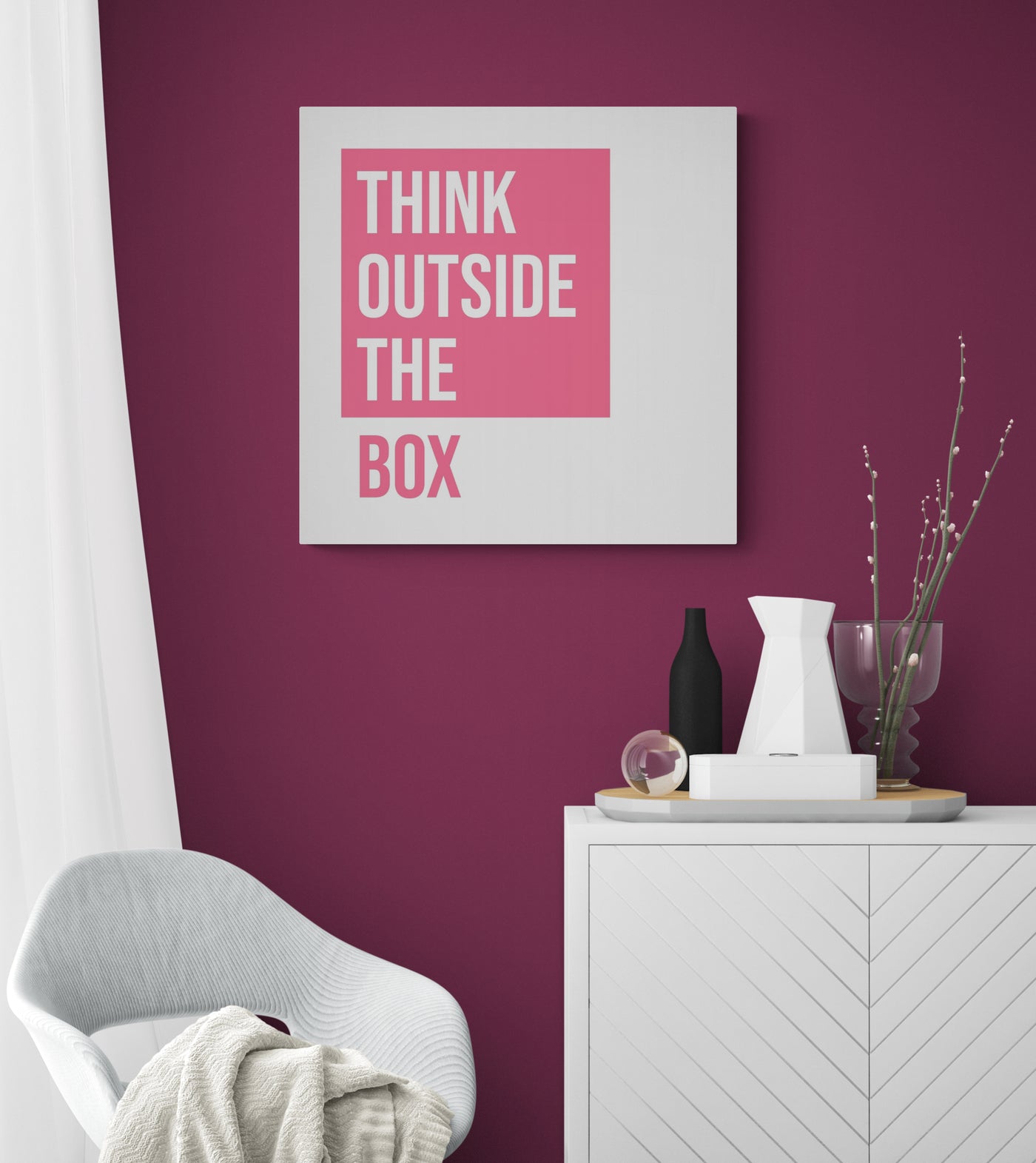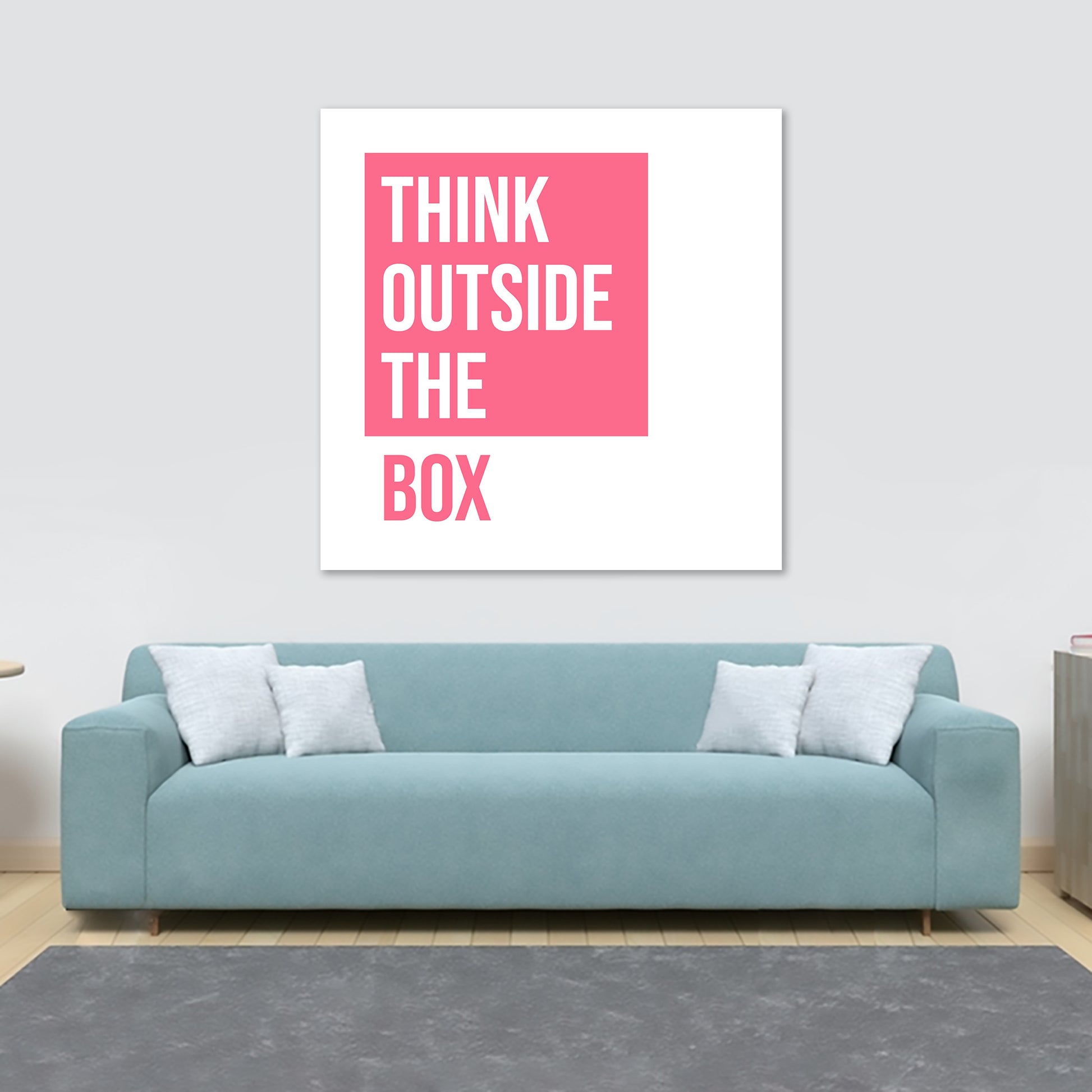 Think Outside the Box pink - Typographic Art - Canvas Wall Art Framed Print - Various Sizes