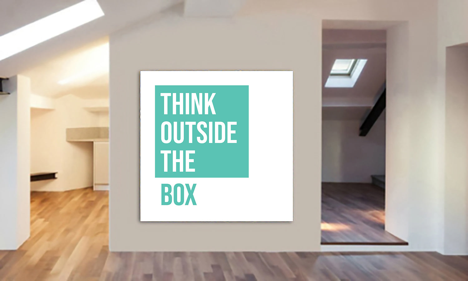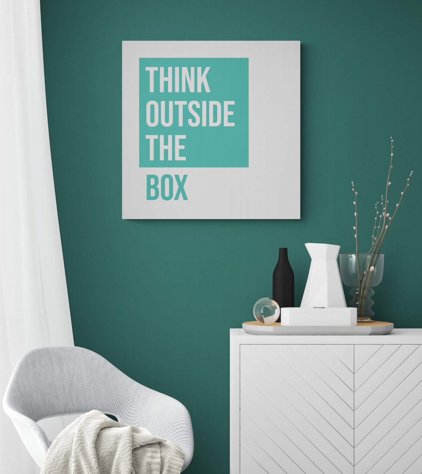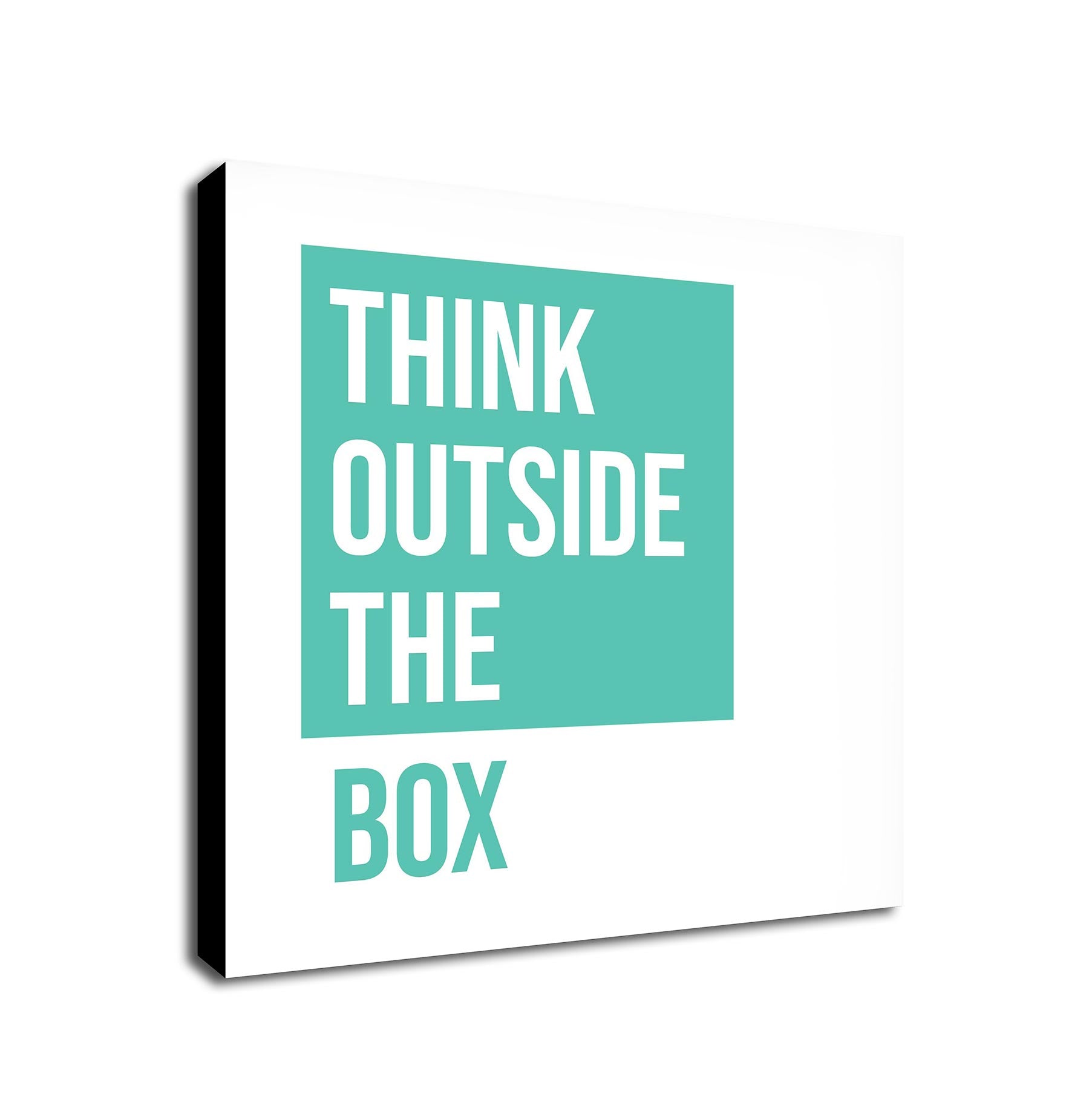 Think Outside the Box turquoise - Typographic Art - Canvas Wall Art Framed Print - Various Sizes