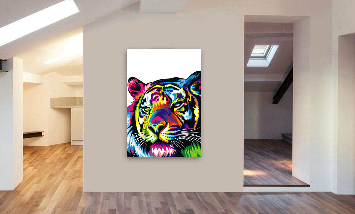 Tiger Abstract Pop Art Canvas Wall Art Framed Print - Various Sizes