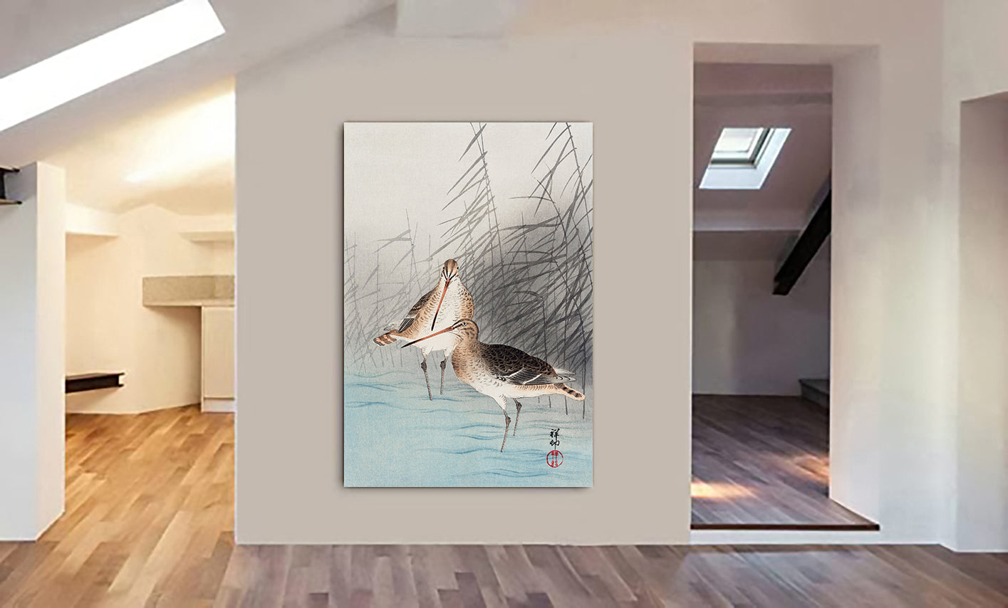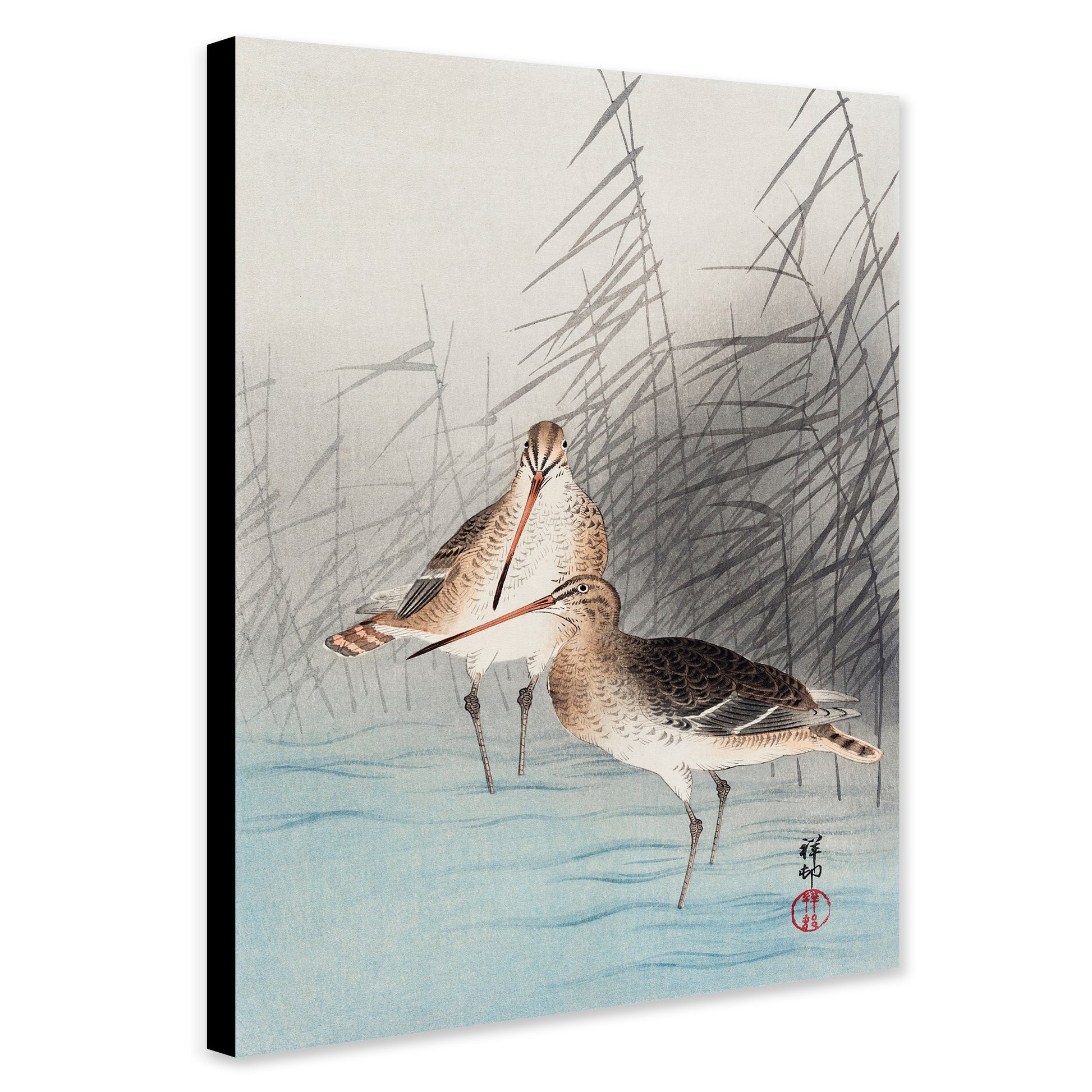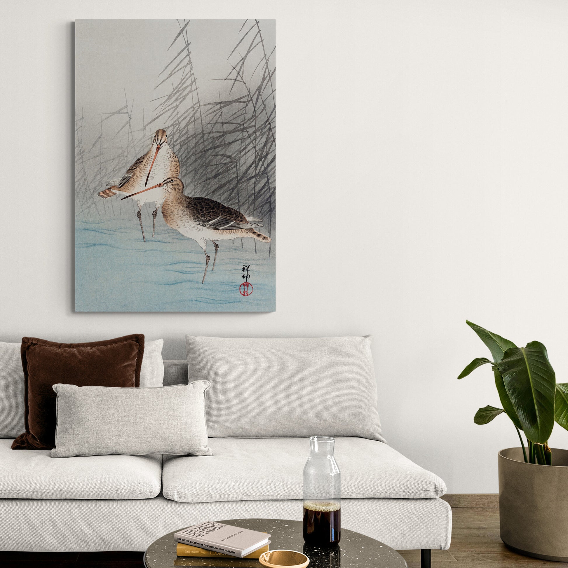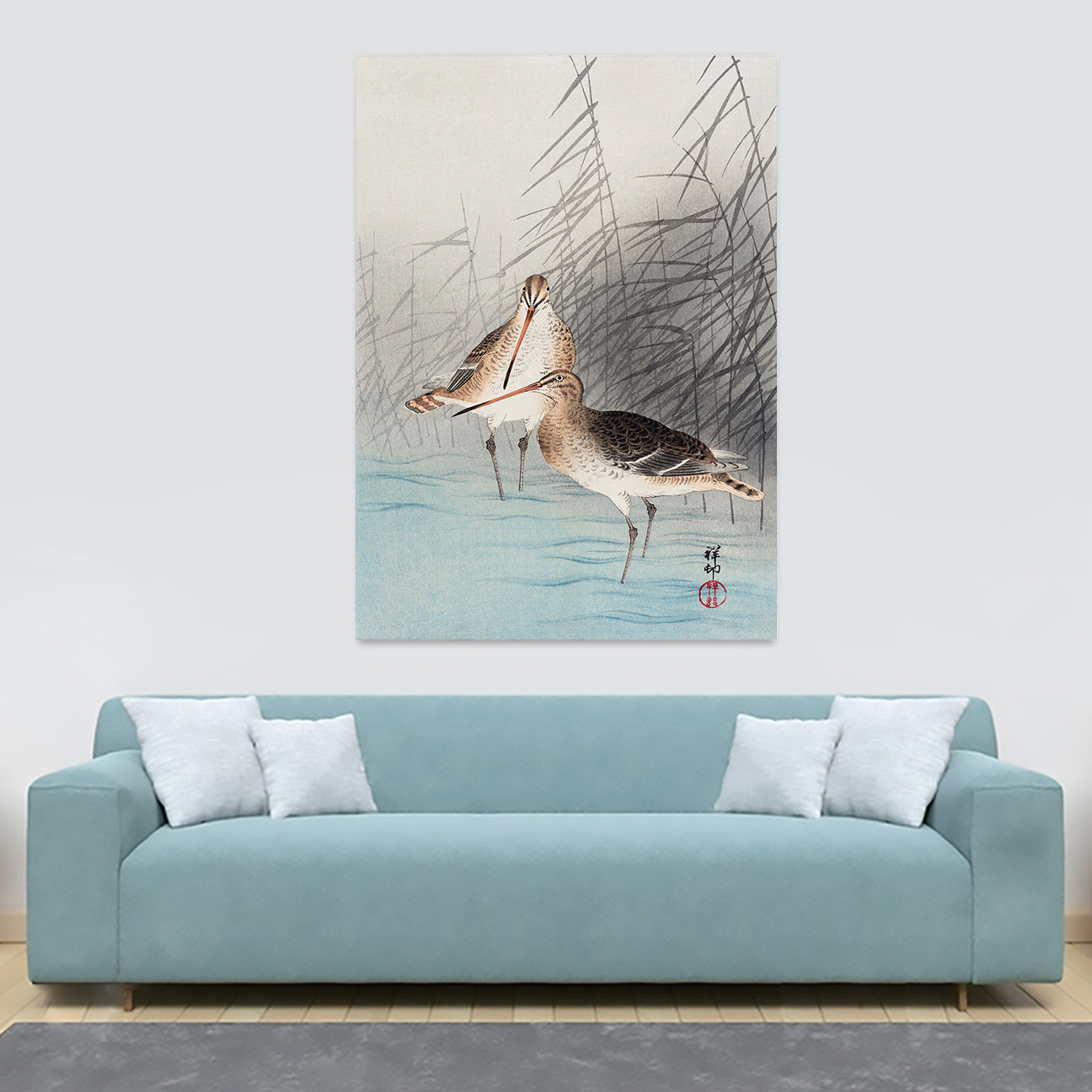 Two Bar-tailed Godwits - Japanese Wall Art by Ohara Koson - Canvas Wall Art Framed Print - Various Sizes