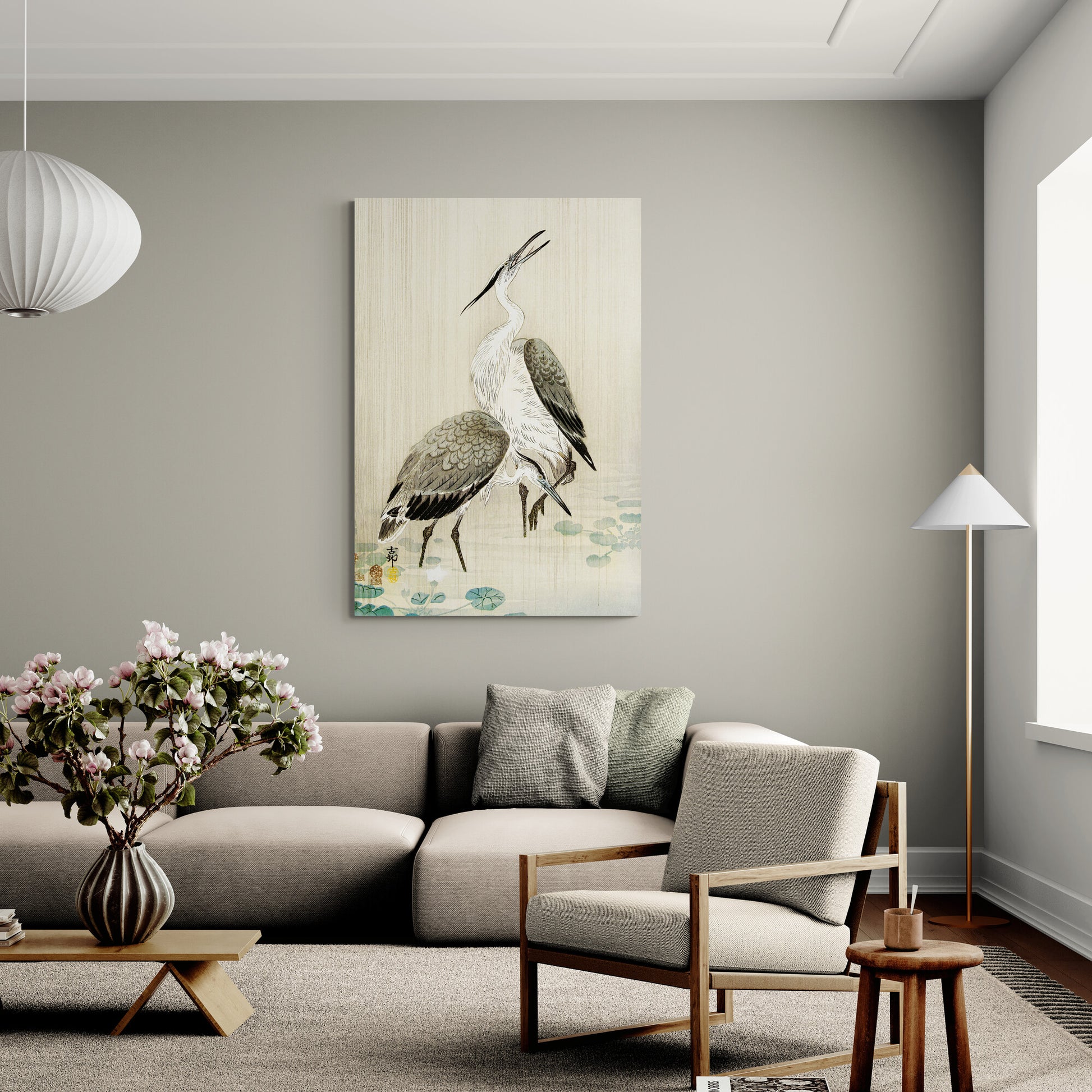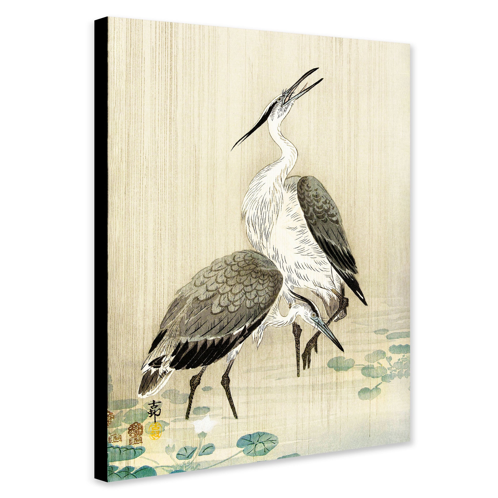 Two Herons In The Rain - Japanese Wall Art by Ohara Koson - Canvas Wall Art Framed Print - Various Sizes