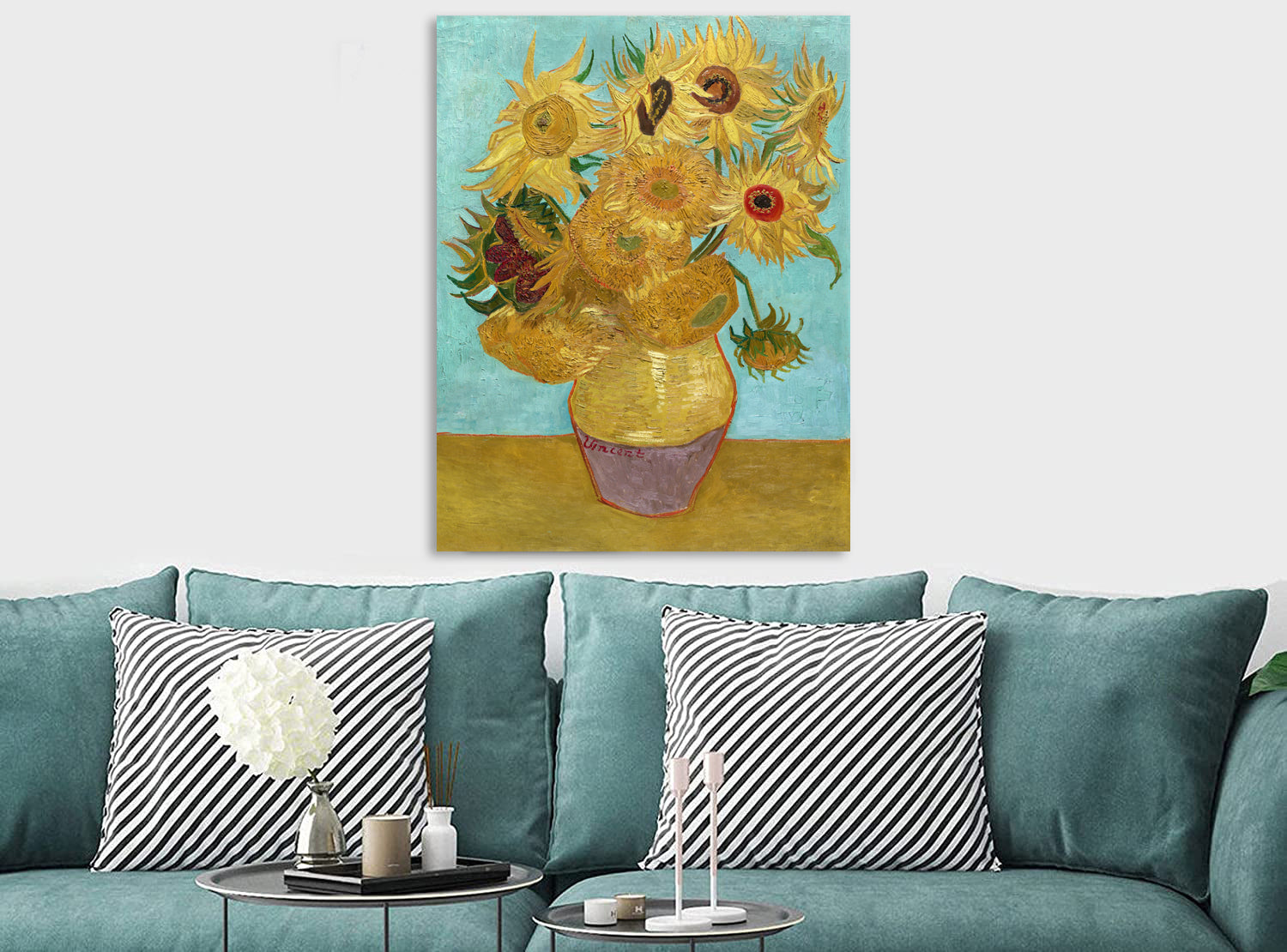Vincent van Gogh - Vase with Twelve Sunflowers - Canvas Wall Art Framed Print -Various Sizes