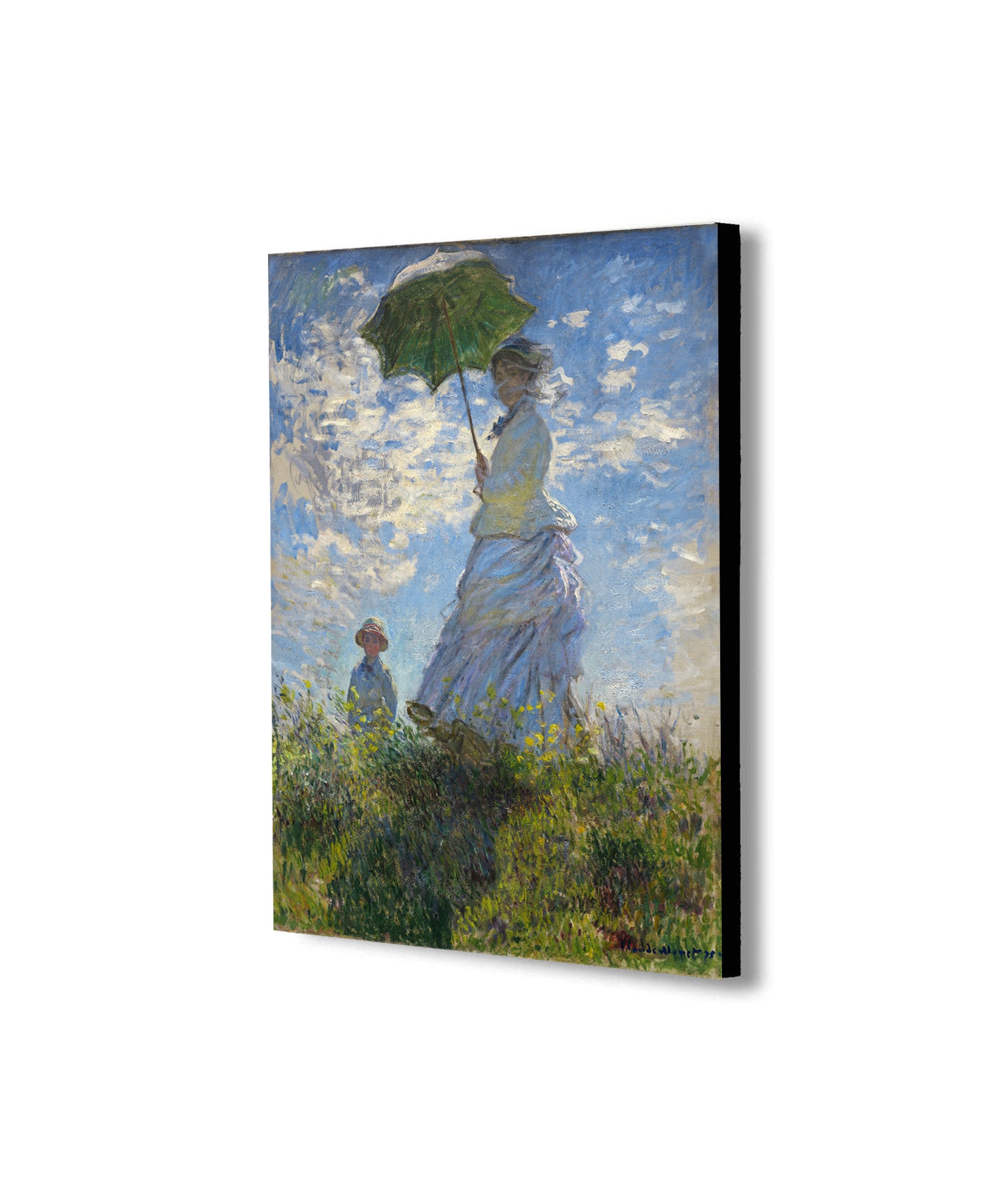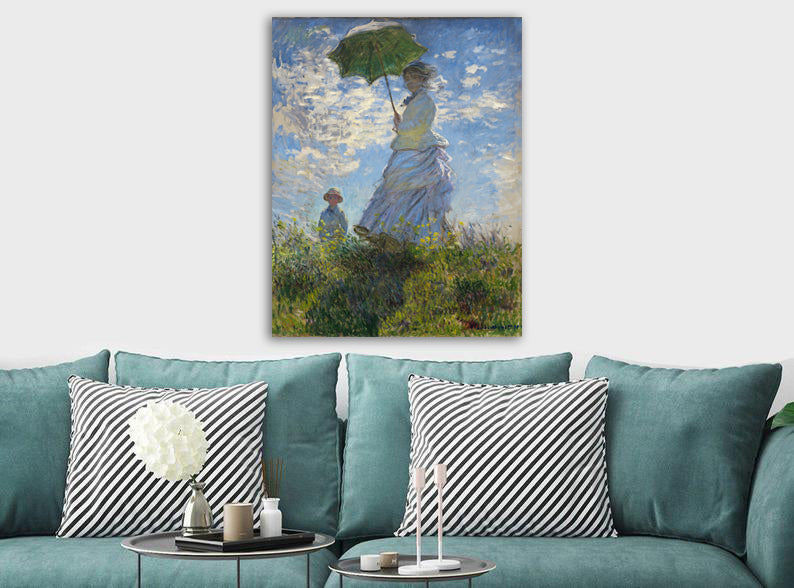 Woman with a Parasol, Madame Monet and Her Son by Claude Monet - Canvas Wall Art Framed Print - Various Sizes